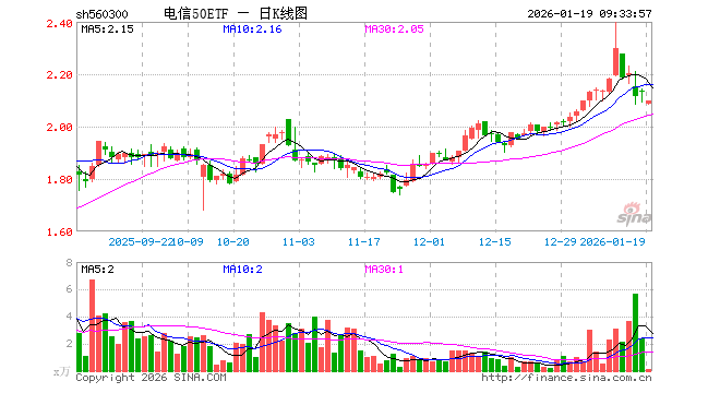 1月19日,电信50ETF(560300)开盘跌2.16%,报2.087元。电信50ETF(560300)重仓股方面,新易盛开盘跌1.25%,中际旭创跌1.94%,中国联通跌0.39%,中国移动涨0.00%,中国电信涨0.17%,银之杰跌1.13%,中国卫通跌2.64%,中兴通讯跌0.47%,天孚通信跌2.08%,紫光股份涨2.73%。