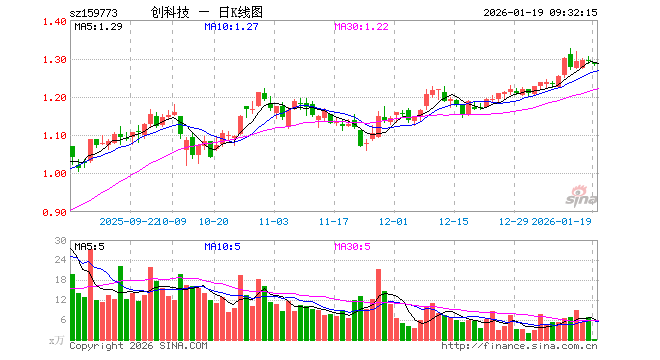 1月19日,创业板科技ETF华泰柏瑞(159773)开盘跌0.31%,报1.289元。创业板科技ETF华泰柏瑞(159773)重仓股方面,中际旭创开盘跌1.94%,阳光电源跌0.58%,宁德时代跌0.24%,迈瑞医疗涨0.00%,亿纬锂能涨0.16%,同花顺跌0.27%,天孚通信跌2.08%,三环集团涨2.39%,欣旺达涨0.08%,昆仑万维跌0.07%。