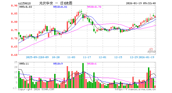 1月19日,光伏ETF指数基金(159618)开盘跌0.72%,报0.827元。光伏ETF指数基金(159618)重仓股方面,阳光电源开盘跌0.58%,隆基绿能跌1.76%,特变电工跌1.98%,TCL科技跌0.41%,通威股份跌5.09%,正泰电器跌1.03%,德业股份涨0.20%,晶盛机电涨4.04%,TCL中环涨0.68%,科华数据跌1.46%。