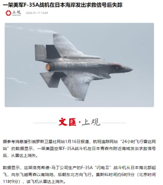 这回美军的面子算是彻底挂不住了。   1月16号,一架号称“全球最强”的F-35A隐身战机,大摇大摆正往东海方向飞,结果半道上突然挂出“7700”代码。   懂行的都知道,这是最高级别的“救命”信号。   仅仅过了10秒,雷达上就找不着影了。   这架F-35A的航线再普通不过:从三泽基地起飞,沿日本海常规巡逻。但当它转向东北时,机载系统可能同时触发了多个致命故障。   根据Flightradar24数据,信号中断前没有任何减速或规避动作,更像是突然断电或结构解体。这种"死亡静默"在F-35家族并不罕见——近五年美军F-35机队平均每四个月发生一次重大事故,60%涉及机械故障。   2025年阿拉斯加的坠机事故,正是液压油混入海水结冰,导致操控系统瘫痪;2021年英国F-35B坠海,只因地勤漏拆发动机屏蔽罩。这些案例揭示一个残酷现实:F-35的复杂系统就像精密钟表,任何一个齿轮卡住,都可能引发连锁崩溃。     美军吹捧的"隐身神话"在故障率面前不堪一击。F-35A的AN/APG-81雷达和分布式孔径系统(DAS)确实领先,但过度集成的航电系统反而成了累赘。2024年美国防部报告显示,F-35机队任务执行率仅50%,一半飞机因维护问题趴窝。   洛克希德·马丁的垄断维护体系让地勤连更换螺丝都需原厂授权,亚太地区高强度部署更让飞机超负荷运转。就像2019年日本坠机事故后,三泽基地的F-35A曾停飞四个月——这次若查实是共性故障,驻日48架F-35A可能全部停摆,北太平洋隐身防线瞬间崩塌。     事故背后是美军印太战略的脆弱性。三泽基地作为北翼核心,原计划2026年换装48架F-35A,与阿拉斯加的F-35形成"太平洋铁幕"。但此次坠机直接打乱部署节奏:日本已采购105架F-35A,2025年刚接收第三批,如今却要面对"本土附近频繁坠机"的质疑;韩国原计划增购20架,现在可能推迟;澳大利亚更要求美方公开事故细节。这种信任裂痕比战机损失更致命——盟友开始怀疑,美军推销的"绝对优势",是不是随时会掉链子的高价玩具?     更何况青森海域的特殊性让事故后果更加复杂,这里是俄日雷达监测的重叠区,F-35A的隐身涂层、航电系统残骸若被打捞,美军最核心的技术优势将面临泄露风险。2019年日本坠机后,俄方曾公开打捞残骸的声呐数据,这次万米海沟的搜救难度虽大,但周边国家的深海探测能力早已今非昔比。一旦关键技术外流,F-35的"隐身威慑"将大打折扣,美军花万亿打造的空中优势可能沦为摆设。     这不是F-35第一次摔掉美军面子。2018年南海"航母杀手"演练中,F-35C因起落架故障坠海;2023年欧洲军演,F-35A被老式台风战机"击落"17次。   但这次不同:在亚太战略博弈的关键节点,在盟友期待隐身威慑的目光下,F-35A用最狼狈的方式暴露了致命缺陷——它不是无懈可击的空中堡垒,而是一架需要天价维护、频繁趴窝、随时可能失控的"电子玩具"。   当三泽基地的F-16还在勉强起飞,当日本海的浮冰吞噬最后一丝搜救希望,美军不得不面对一个现实:所谓"全球最强",或许只是纸糊的老虎,经不起实战的风吹浪打。     这场事故的调查结果或许还要数月,但美军在亚太的"隐身神话"已经破灭。更致命的是,当盟友开始计算"买F-35是否等于买定时炸弹",当对手看透"高科技装备的脆弱性",美军花几十年构建的技术代差优势,正在一架接一架的坠机中,消磨殆尽。