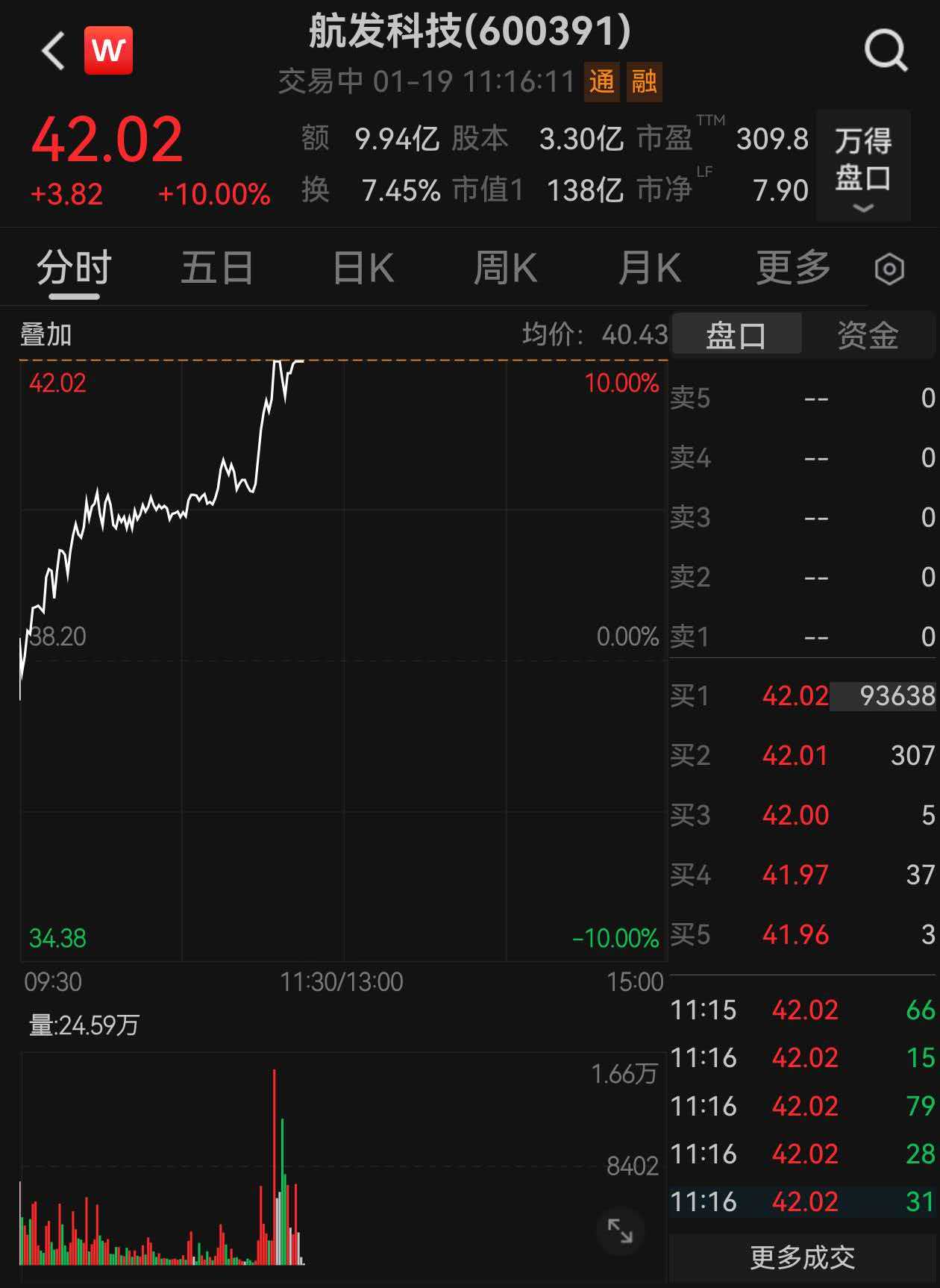 航发科技盘中涨停