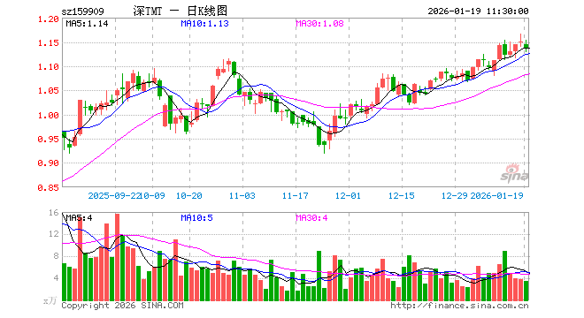 1月19日,截止午间收盘,TMT50ETF(159909)跌0.96%,报1.138元,成交额391.09万元。TMT50ETF(159909)重仓股方面,中际旭创截止午盘跌1.78%,新易盛涨1.44%,立讯精密涨0.52%,北方华创涨0.02%,胜宏科技跌2.12%,中兴通讯跌1.30%,京东方A涨0.90%,海康威视跌0.19%,科大讯飞跌3.33%,沪电股份跌2.88%。