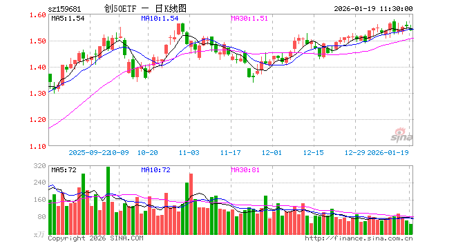 1月19日,截止午间收盘,创50ETF(159681)跌0.90%,报1.537元,成交额7065.70万元。创50ETF(159681)重仓股方面,宁德时代截止午盘跌1.42%,中际旭创跌1.78%,东方财富跌1.59%,新易盛涨1.44%,阳光电源跌0.24%,胜宏科技跌2.12%,汇川技术跌0.19%,迈瑞医疗跌0.22%,亿纬锂能跌0.79%,同花顺跌3.72%。