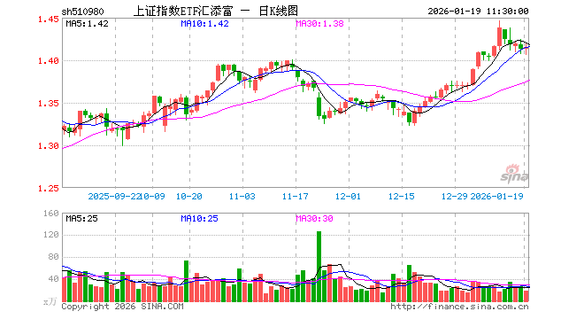 1月19日,截止午间收盘,上证指数ETF汇添富(510980)涨0.14%,报1.415元,成交额2611.21万元。上证指数ETF汇添富(510980)重仓股方面,农业银行截止午盘跌1.11%,贵州茅台跌0.28%,中国银行跌0.56%,中国石油涨0.00%,工业富联跌3.43%,招商银行跌0.21%,中国人寿跌1.05%,长江电力涨0.83%,寒武纪跌0.25%,中国神华跌0.76%。