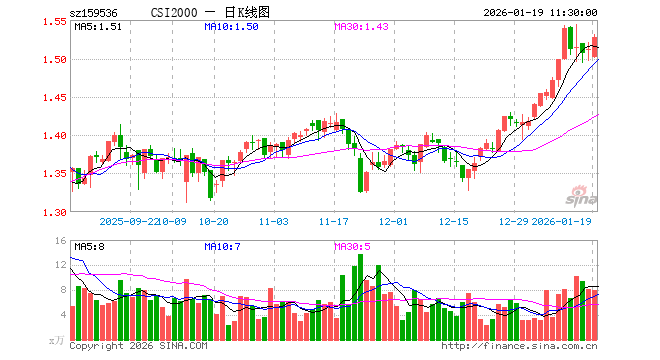 1月19日,截止午间收盘,中证2000ETF汇添富(159536)涨1.06%,报1.527元,成交额1223.76万元。中证2000ETF汇添富(159536)重仓股方面,华胜天成截止午盘跌7.05%,沃尔德跌1.81%,永鼎股份跌1.13%,中邮科技涨1.67%,汉威科技涨2.00%,仕佳光子跌3.93%,国恩股份涨1.72%,普邦股份涨1.05%,龙泉股份涨1.25%,嘉元科技跌5.42%。