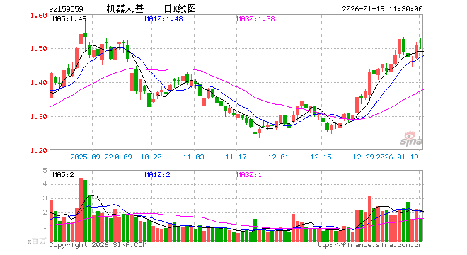 1月19日,截止午间收盘,机器人50ETF(159559)涨0.86%,报1.522元,成交额2.45亿元。机器人50ETF(159559)重仓股方面,双环传动截止午盘涨1.95%,科沃斯跌0.68%,石头科技涨1.09%,绿的谐波跌0.07%,机器人涨0.00%,拓普集团涨5.76%,鸣志电器涨3.11%,埃斯顿跌0.39%,汇川技术跌0.19%,富临精工跌1.72%。