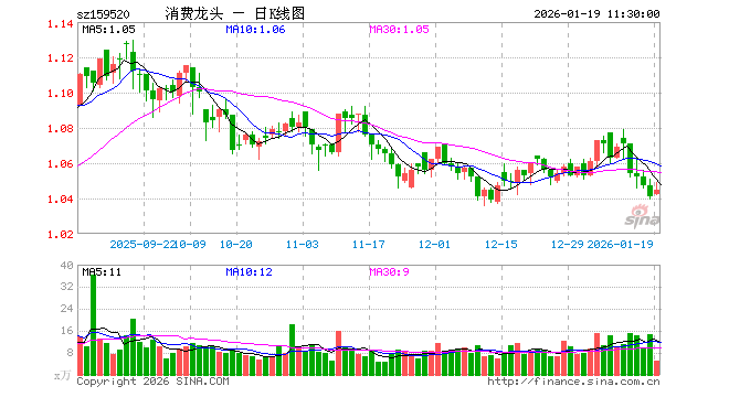 1月19日,截止午间收盘,消费龙头ETF(159520)涨0.38%,报1.045元,成交额548.19万元。消费龙头ETF(159520)重仓股方面,贵州茅台截止午盘跌0.28%,格力电器涨0.27%,伊利股份涨0.37%,牧原股份跌0.02%,赛力斯涨0.09%,福耀玻璃跌0.31%,温氏股份涨0.63%,山西汾酒跌1.61%,海尔智家涨0.54%,分众传媒跌0.81%。