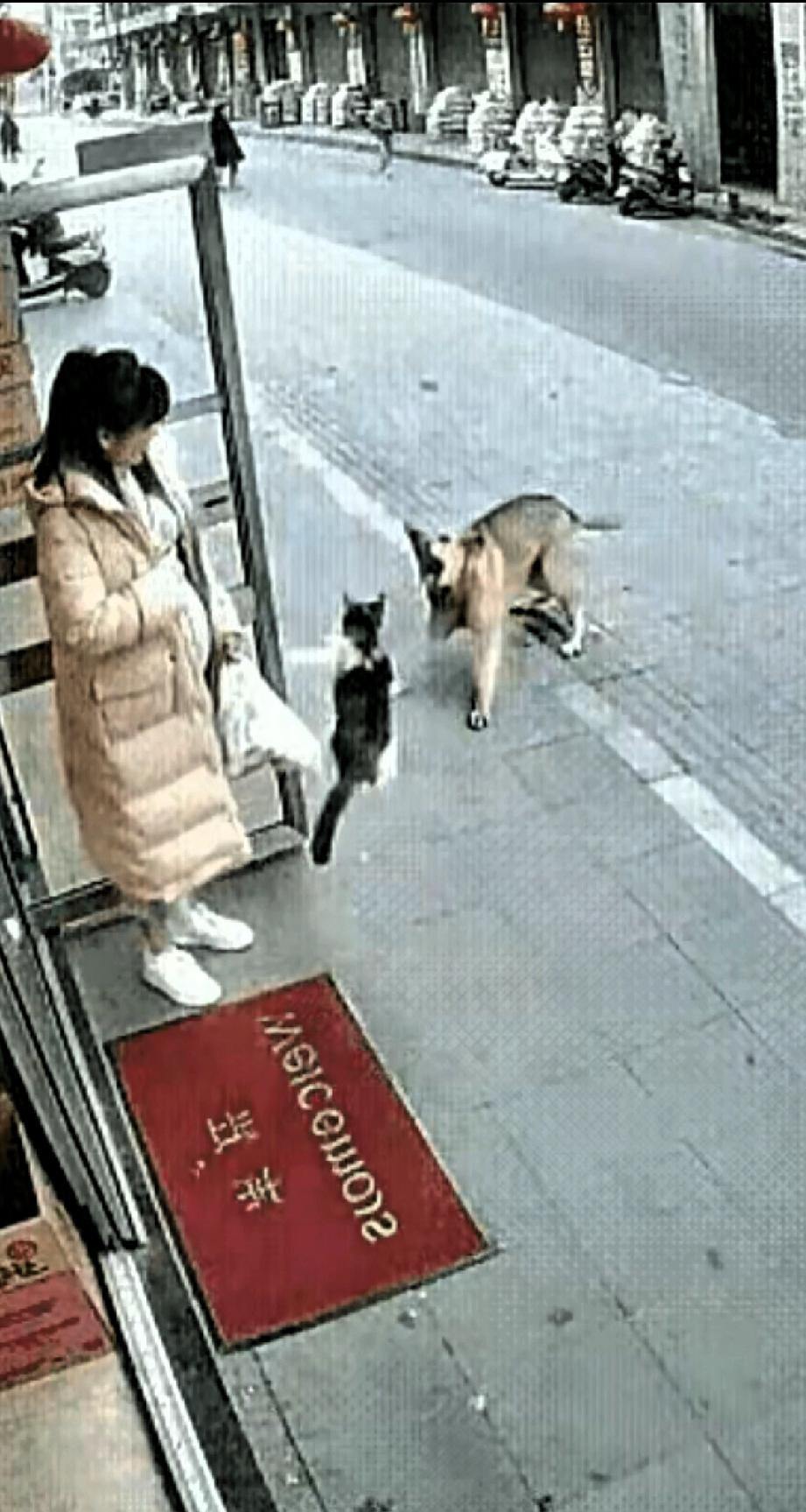 万物皆有灵! 善良的女子遇上了感恩的猫。 女子马上去医院生产了,去之前在去喂一次流浪猫,怕长久没人喂饿着,刚刚走近猫窝,不知从哪窜出一只硕大的狗狗,对着女子狂吠,女子吓得赶紧用棉袄裹紧隆起的腹部,猫咪见自己的恩人遭到攻击,勇敢地冲到女子的身前护住恩人,只见它高高跃起,一阵旋风掌急速地拍向狗狗的面门,那带钩的爪子又尖又利,挠上了必定皮开肉绽,狗狗不敢恋战狼狈逃走。女子回过神来,果断把猫咪带回家。 猫咪用自己的勇敢,给自己争取到了一个温暖的家!祝福女士的宝贝顺顺利利出生,幸福快乐!
