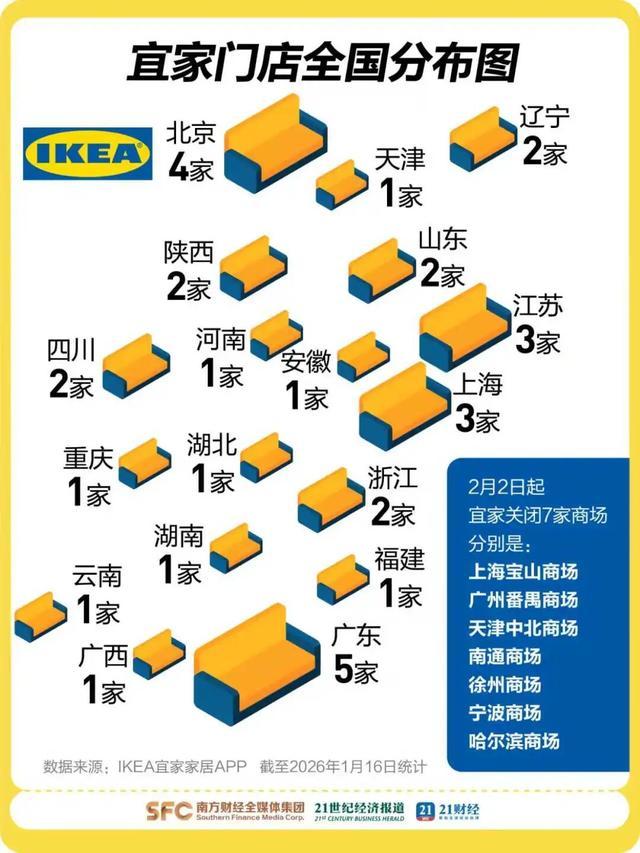 1月7日,宜家中国按下了一次关键的暂停键:自2月2日起,关闭宜家上海宝山商场、宜家广州番禺商场等七家线下商场,约占其中国市场商场总数的近五分之一。