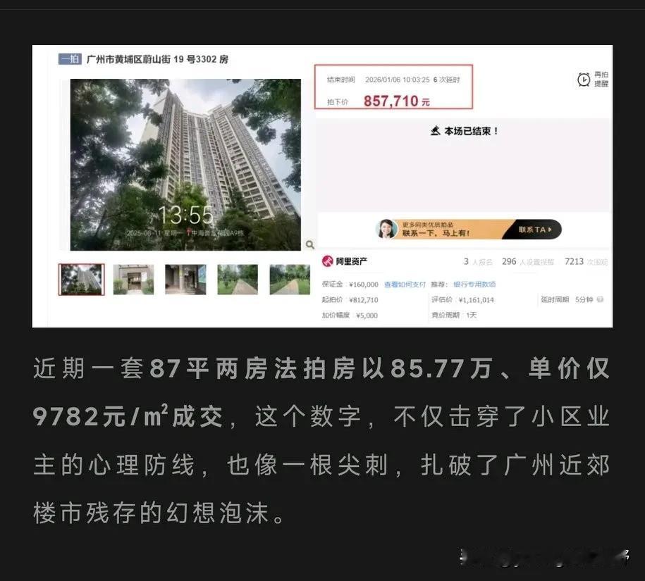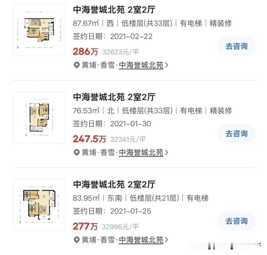 中海誉城小区,当年在广州科学城板块也是非常火的。那时在附近租房子,经常看到周末好多人过来看房。在高峰期的时候,这里房价达到了33000元左右,但最近看公众号,同样的两房的户型,却只是85.7万元的价格成交成了法拍房。这个价值降幅的变化可真惊人呢。不过法拍房,价格比起二手房应该也会更低一些,二手房应该不会那么便宜了。