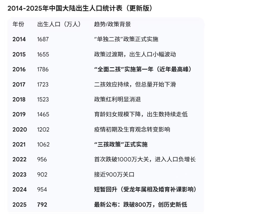 出生人口792万,让我缓缓。什么也别说了,必须狠抓了联合国2025年12月的预测,中国2025年出生人口是871万。我当时还说,和尼日利亚、巴基斯坦差不多了,分别有760万、690万。但联合国又犯了一贯的错误,高估中国出生人口、长期人口趋势。结果出来是792万,不到800万,我真的有些震惊了。算是符合我内心的期待吧,给一个震憾性的极差数字,把问题凸显出来。真的出现了这种数字了,这么快就出来了。什么也别说了,必须改成以出生人口为中心发展。最重要的是思想教育问题。从中小学到大学,必须加上男女关系、人口相关的教育了。不能放任错误思想流传。出生人口最大的问题,是男性和女性对于关系预期极其错误!离谱!出了一堆不可思议的段子。一些人甚至走上了犯罪道路,借彩礼和婚姻谋财。男女关系搞到极坏。影视剧也起了很坏的作用,男女都搞疯掉了,完全不符合现实。