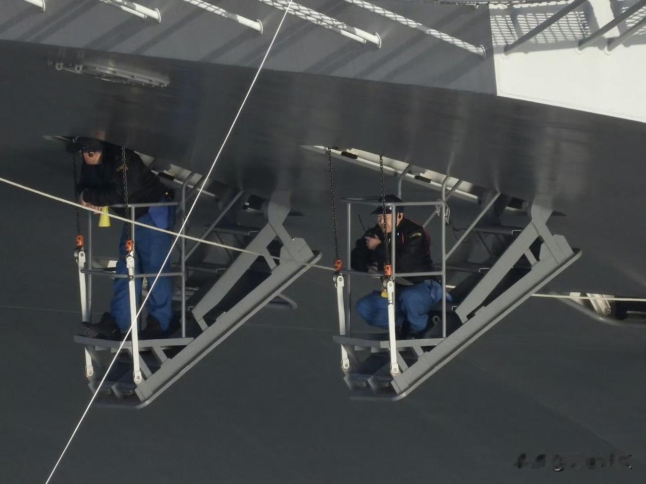 日本海上自卫队“加贺”号轻型航母在舰首侧面设置有可收放的人员观察装置,用于进出港