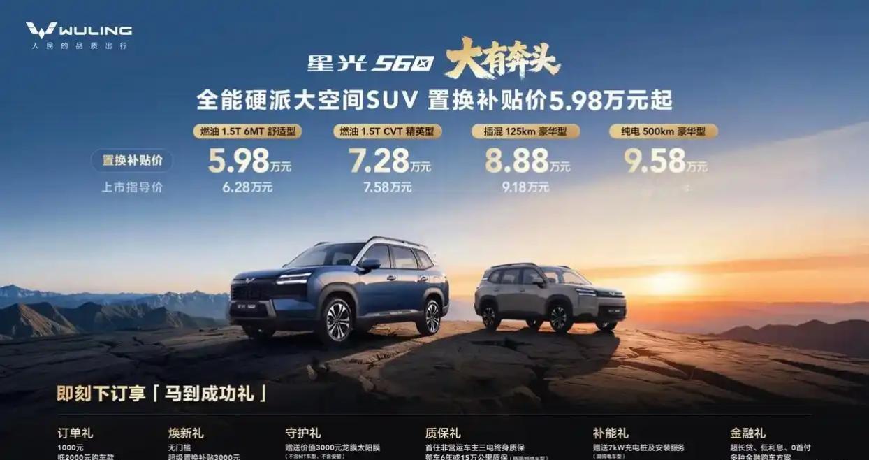 五菱汽车2026年新布局聚焦‌多款新车型上市、新能源技术升级和智能化战略深化‌,覆盖3万至20万元价格带,满足代步、家用及商用需求。以下是具体规划:‌‌ 新产品矩阵与核心车型 1️⃣‌星光560(紧凑型SUV)‌。 动力:燃油(1.5T)、插混(纯电125km)、纯电(500km)三版本。‌‌ 价格:首发权益价5.98万起,2026年1月15日上市。‌‌ 亮点:轴距2810mm,标配Ling OS 2.0系统(支持语音交互、手机互联),提供5/7座布局。‌‌ 2️⃣‌宏光MINIEV 2026款(微型车)‌。 升级:圆润前脸设计,续航提升至200km,新增四门版。‌‌ 价格:3.58万起,主打城市通勤。‌‌ 3️⃣星光L(中大型SUV)‌。 动力:1.5L插混(纯电150-280km),综合续航1100km。‌‌ 定位:15万级,提供5/6座布局,高强度钢车身+6安全气囊。‌‌ 4️⃣‌缤果Pro(小型车)‌。 动力:65kW单电机,纯电续航400km。‌‌ 价格:约6万起,延续圆润设计风格。‌‌ 5️⃣宝骏华境S(大型SUV)‌。 合作:与华为联合开发,搭载乾崑智驾ADS 4 Pro系统。‌ 配置:1.5T插混(纯电130-175km),六座布局,20万级。‌‌