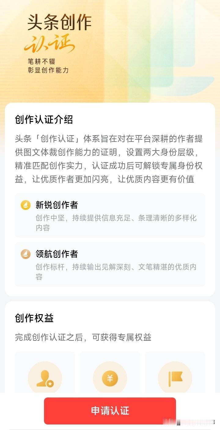 新手小白写微头条该怎么选垂直领域呢? 现在已经没有认证领域了,只有新锐创作者和领航创作者这两个认证了,其实这就是以前的普通创作者和优质创作者的翻版。 目前个人认证已经没有垂直领域可以选择了,只有新锐创作者和其升级版领航创作者两个选项。 相比于过去十几个垂直领域来说,精简后的认证比以前更加灵活,现在新手小白写微头条的时候,可以不必再局限于很窄的创作领域。 比如说以前你写育儿,就只能写养孩子的知识和心得,而现在你可以写家庭方面的,育儿只是家庭生活其中的一部分,能写的面比以前要宽泛很多。 那新手小白写微头条该怎么选垂直领域呢?我的建议是从你熟悉的方面入手写,不要选择你觉得热门的垂直领域,因为写作灵感来源于生活。 说说自媒体心得 生活里你平时经历过的事情,你都可以拿来写,而那些热门领域呢,你未必就能摸透其中的门道,写什么不重要,重要的是你能源源不断的写下去。