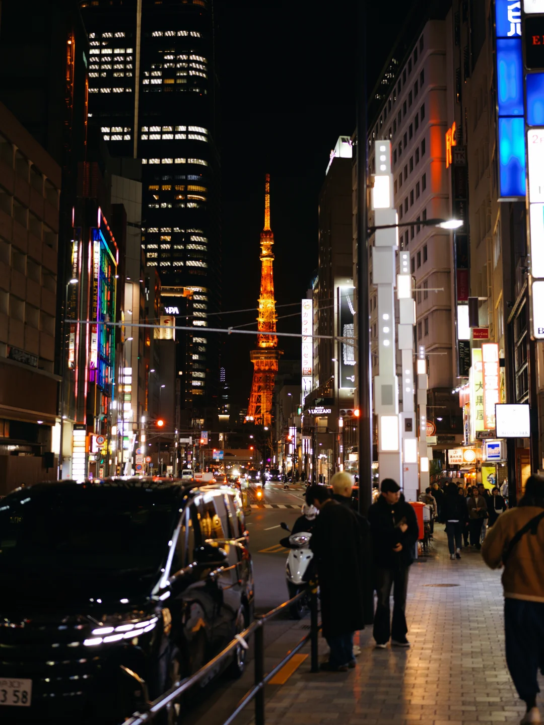 晚上七点半,10度的空气,东京有一种独特的气息,一直是有点清冷,零星分布的烟火气息在乌黑的城市里一直这么抢眼。趁着东京塔变成blackpink 之前拍到了它原有的样子