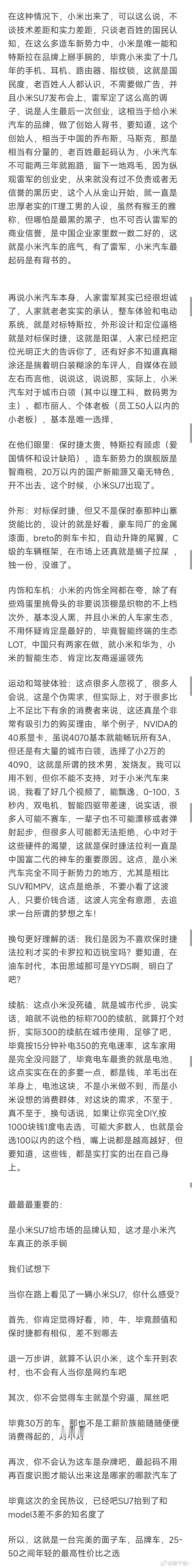 一开始大家都觉得用“小米”这个名号造车太low了,但正是“小米”这个家喻户晓的名号帮助小米汽车度过了最为艰难的时刻如果小米汽车改个名字,su7能不能一炮而红真的要打个问号小米汽车
