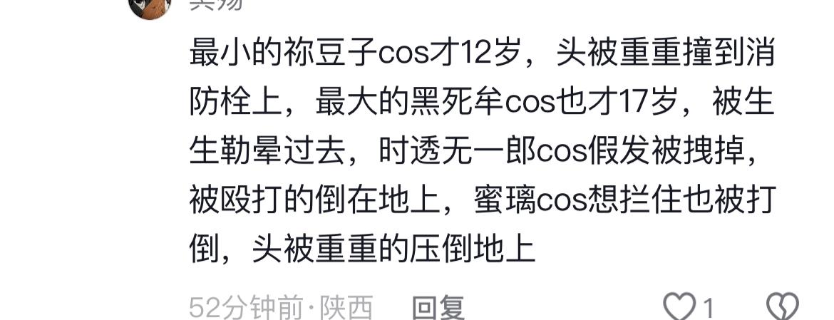 成都16岁男孩,打的人是穿“鬼火之刃”cos play 服装的女孩,最小的女孩1