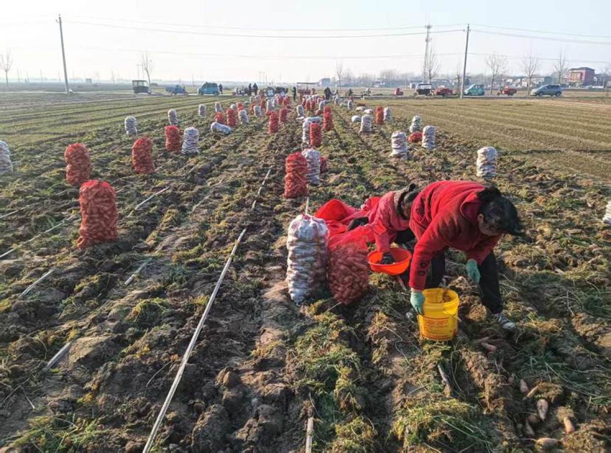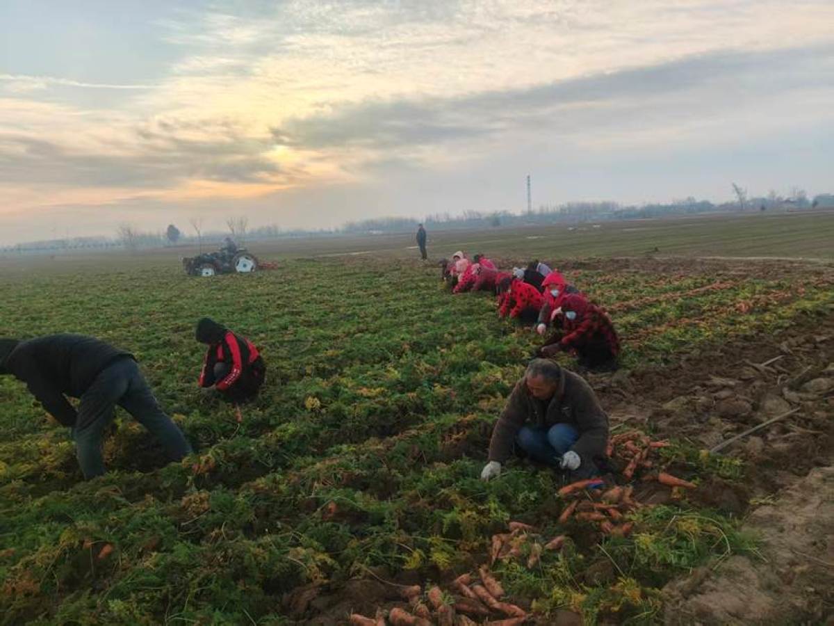 冬至过后,正是胡萝卜成熟采收的黄金时节,河南杞县西寨乡小集村田垄间,村民们正忙着拔收、分拣、装袋,一根根色泽鲜亮、个头饱满的胡萝卜从泥土中被挖出,整齐码放的包装袋在田间,丰收的喜悦洋溢在每个人的脸上。