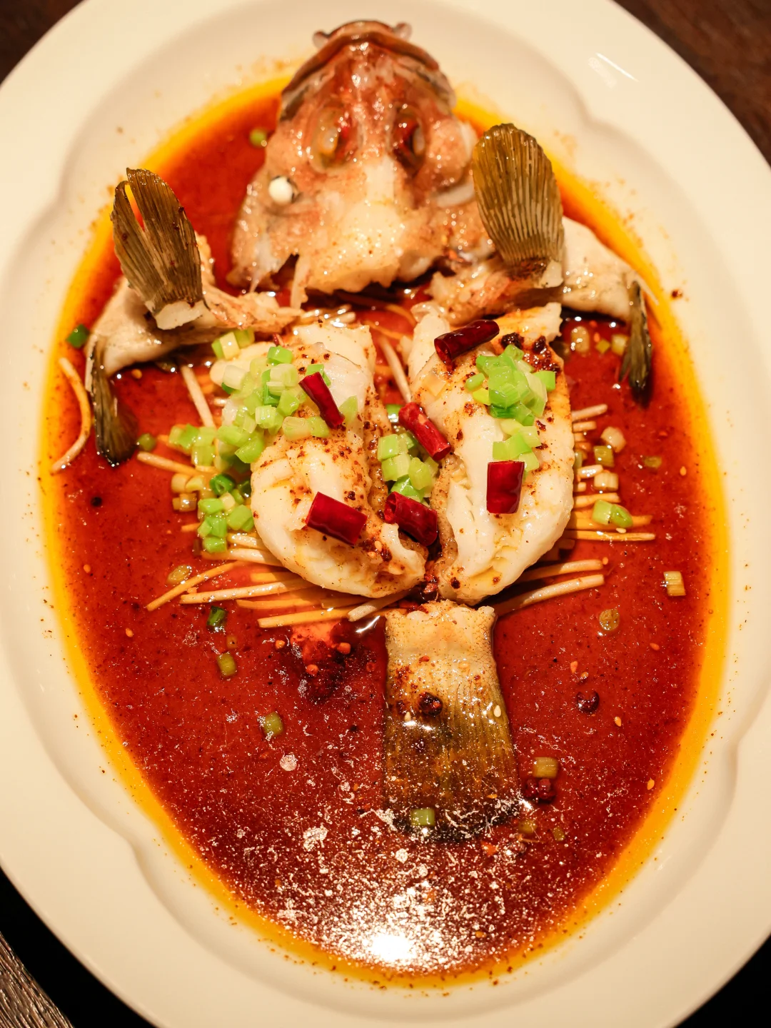 红玫瑰肉质比一般斑鱼更为紧实,且油淋处理后,肉会裂开成更为饱满、大块的蒜瓣肉,蘸点茶油一起,是一种毫无夸张也不矛盾的鲜咸辣甜,真的很好吃!