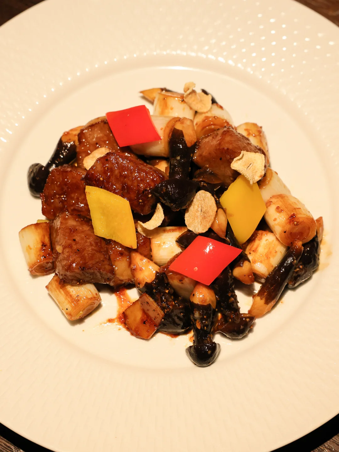 怎么说呢,夹起来是能隐约看到雪花的高品质和牛肉,吃起来也是很让人满足的油脂感,入口即化,余韵则是黑椒的淡淡辣意,很高级很传统的那种粤菜炒法,但就是越吃越亏。
