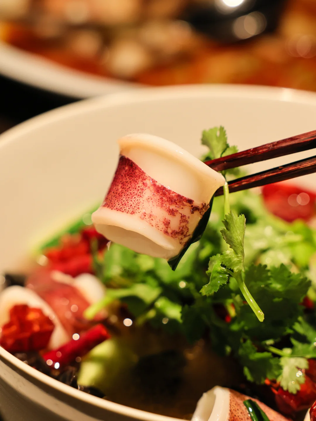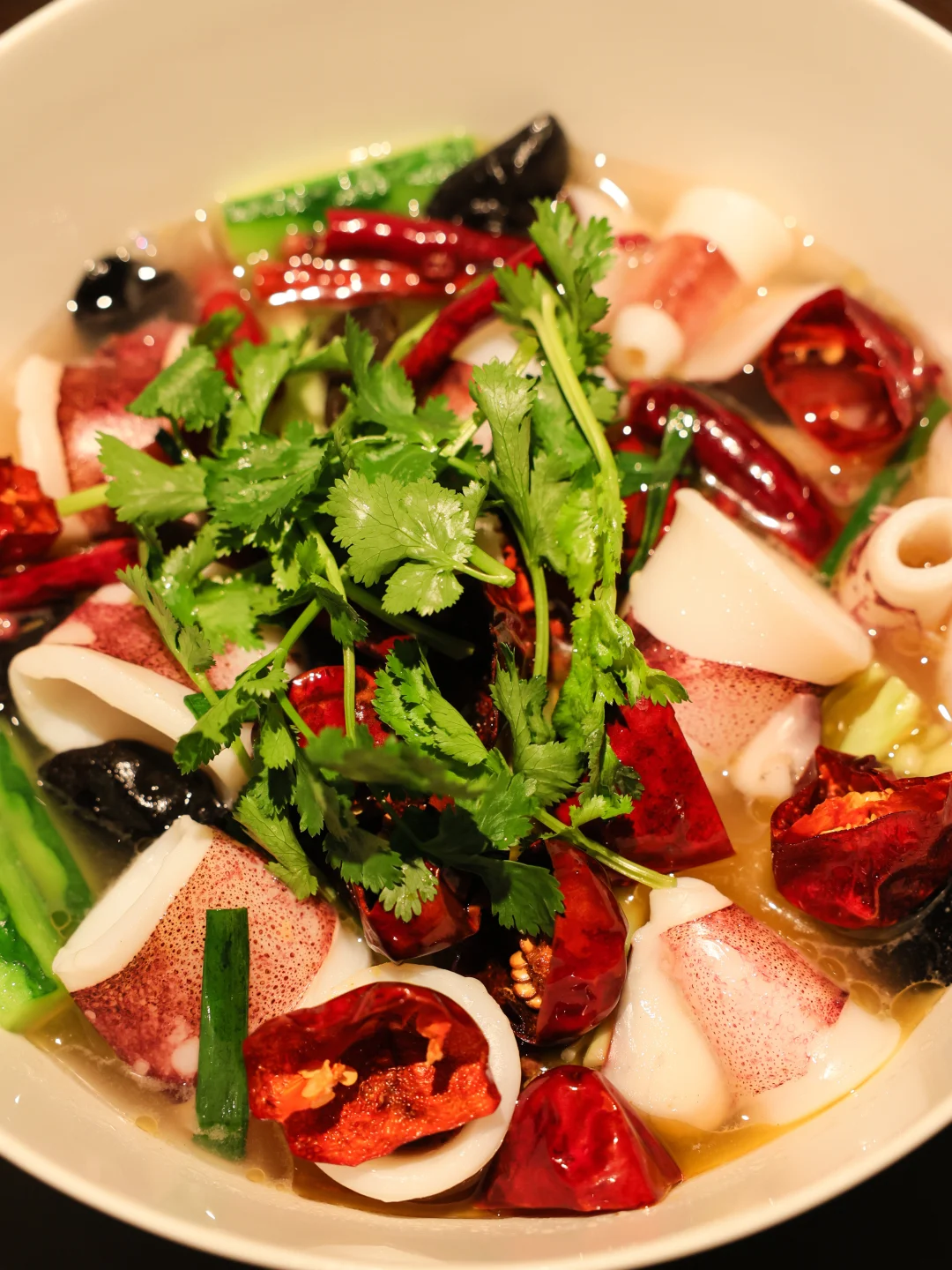 酸汤的香气不如之前吃过的酸汤肥牛那么突出,而小管虽然很漂亮,但是吃起来就是弃之可惜,但又没有任何味道的那种风格:酸味不突出,鲜味不突出,小管口感也不突出,糯劲也没有,以后肯定不会再点这道菜了。