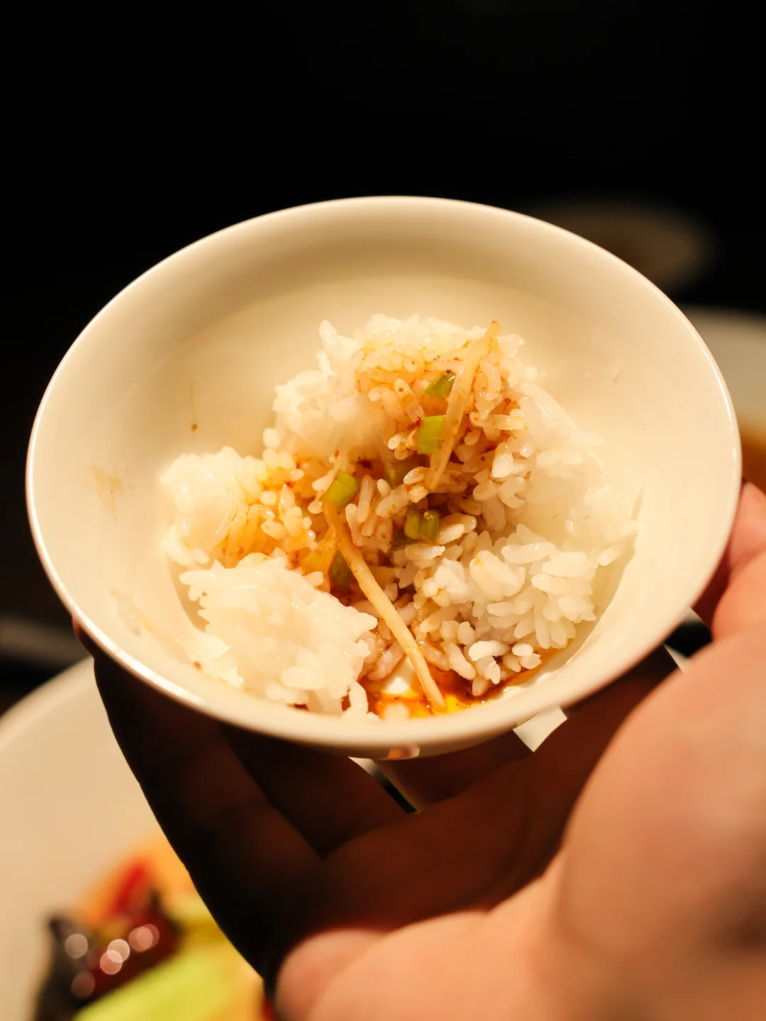 然后问服务员要了一碗米饭,直接用剩下的茶油拌饭,是非常香的吃法!那种茶油混合一点点辣椒的颗粒,一整碗甜咸辣的油脂混合碳水的组合,非常满意这样的搭配!