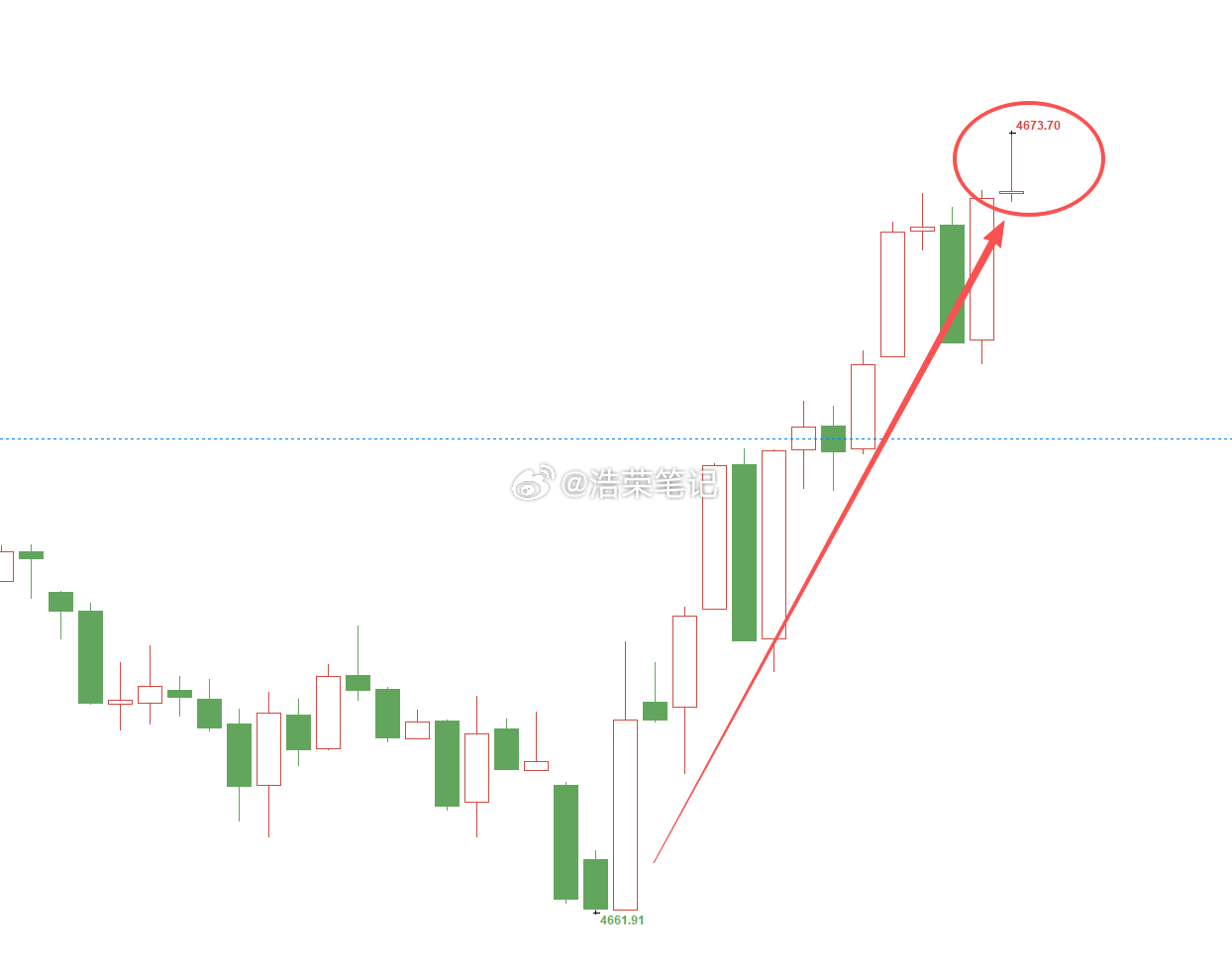 黄金4662位置多,现行情如期上涨,现报价4673位置,多单顺利浮盈110个点,