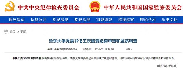 据山东省纪委监委消息:鲁东大学党委书记王庆涉嫌严重违纪违法,目前正接受山东省纪委监委纪律审查和监察调查。