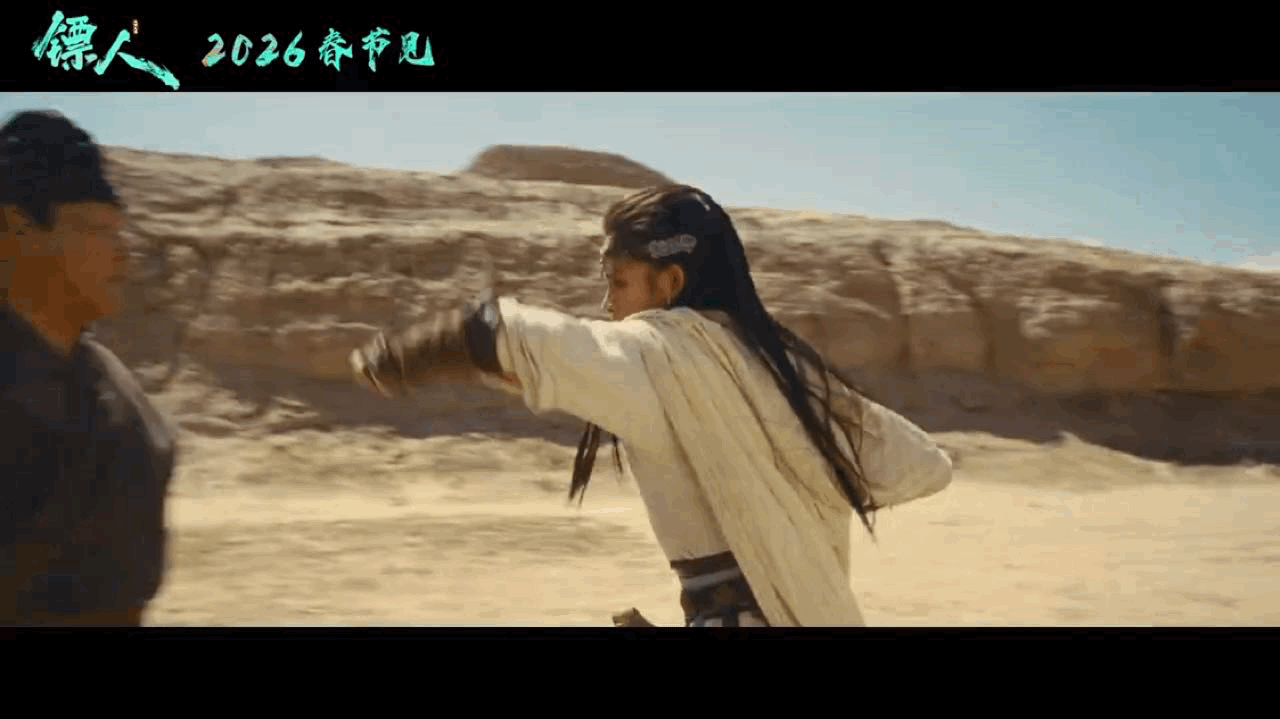 也是在《镖人:风起大漠》预告里第一次看到女战神阿育娅的造型,陈丽君用弯弓的起手式展现出了身形上的优势,迅捷凌厉,图2里应该就是她之前在短期内完成的那场高危的马战戏份吧,图4里的贴身靠打当仁不让,配上“擅动刀兵者,死!”的清脆断喝,短短几个镜头就展示了精英越剧演员的功力,生动演绎属于阿育娅的标志性台词“我即是大沙暴”。陈丽君武侠造型跨年电影愿