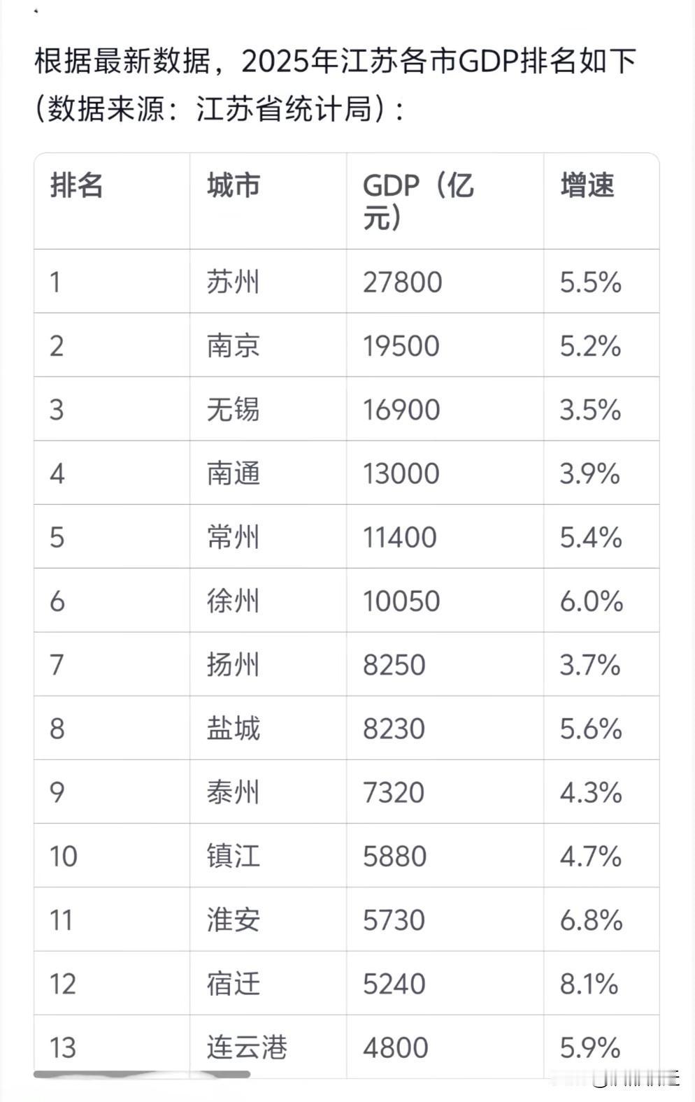 2025年,江苏“十三太保”GDP预测成绩夺目,发展态势炽热。徐州市实现重大跃升,GDP首次突破万亿元大关;宿迁市亦迈进5000亿大关,发展势头迅猛。江苏各城市竞相争逐,未来发展令人翘首以盼!