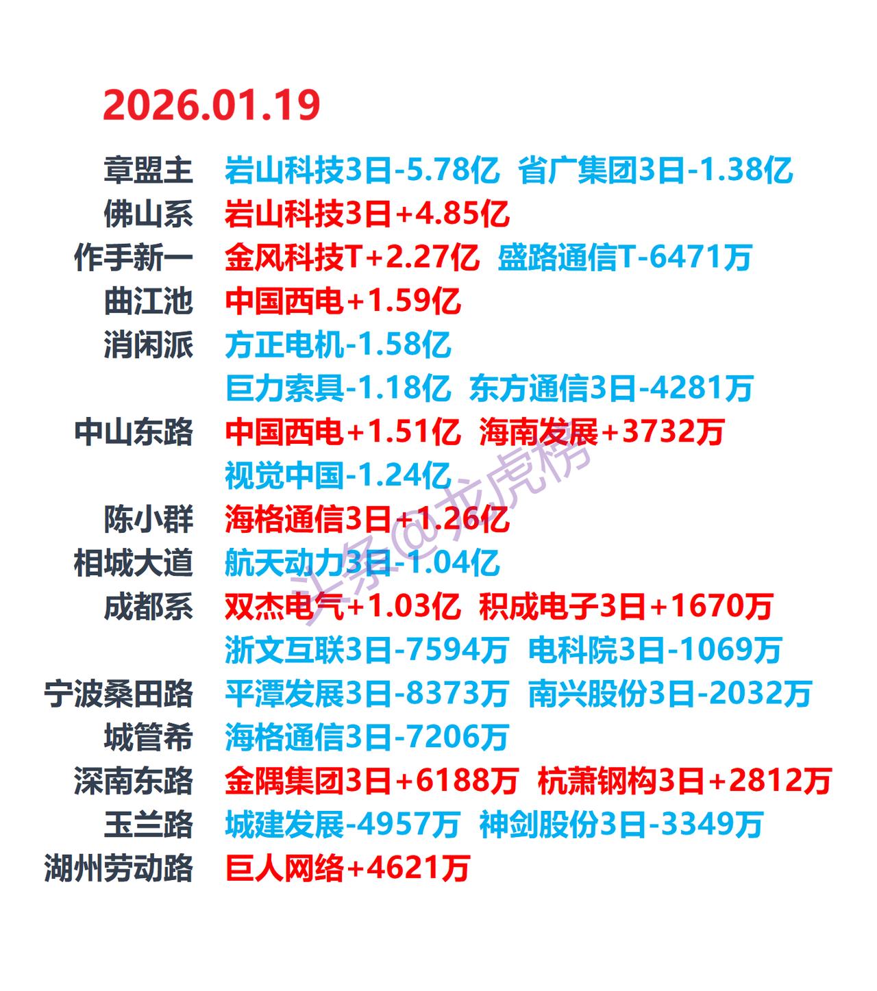 2026-1-19 游资龙虎榜,游资动向