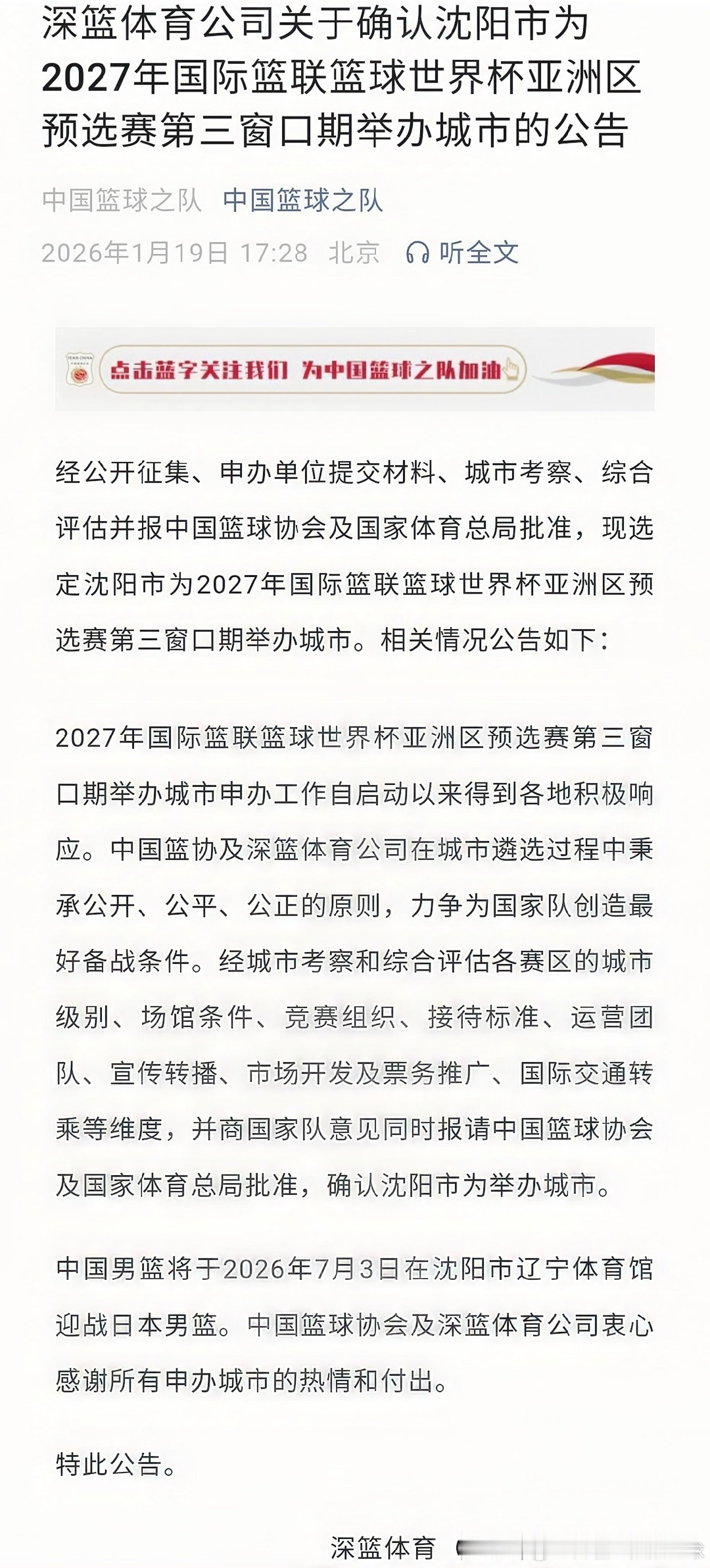 深篮体育正式敲定,男篮世预赛第三窗口期的比赛放在沈阳打,2026年7月3日,中国男篮会在沈阳的辽宁体育馆和日本男篮交手,除此之外,7月6日中国男篮还会在这迎来和中国台北男篮的主场对决。之所以这场中日对决的举办地被关注,是因为男篮世预赛第二窗口期,原本该在中国台北开打的对阵中国男篮的主场赛,被国际篮联(FIBA)单方面改到了菲律宾马尼拉这个中立场地,中国台北篮协对此一直有意见,还借着这事向FIBA提出要求,想把7月6日中国男篮主场对他们的比赛,也挪到韩国这类中立场地。不过截至目前,FIBA的官网上都没有更新这场比赛的举办地信息,也就是说,7月6日的这场对决,举办地依旧标注的是中国,暂时没有要更换的迹象。中国男篮中国男篮