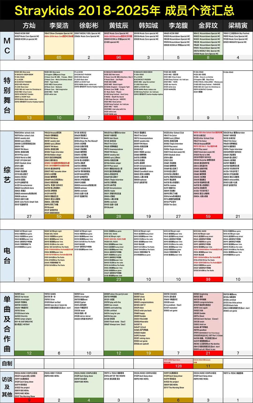 Straykids 出道八年个资汇总大拉表 方灿 李旻浩 徐彰彬 黄铉辰韩知城