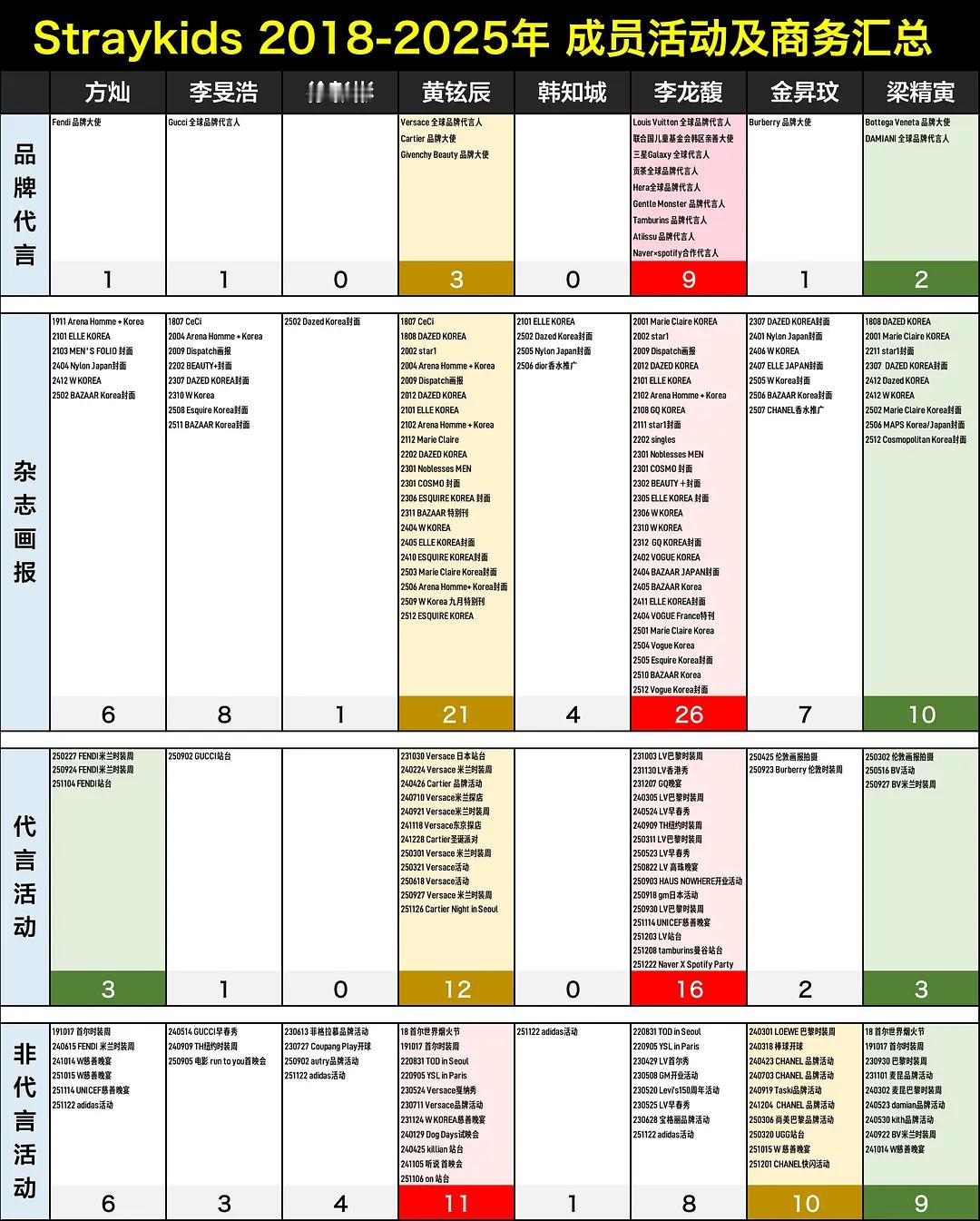 Straykids 出道八年个资汇总大拉表 方灿 李旻浩 徐彰彬 黄铉辰韩知城 李龙馥 金昇玟 梁精寅