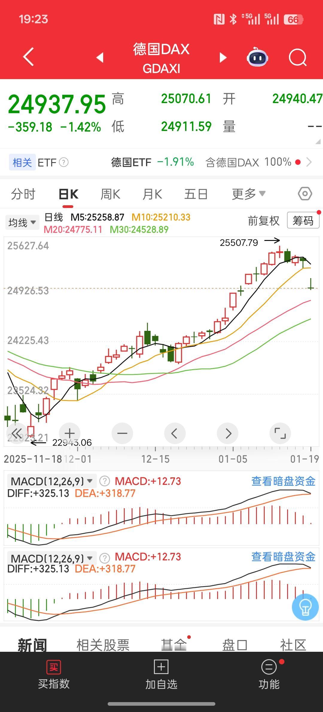 欧洲与美国两国之间相互要增加关税,现在欧洲股市大幅低开,估计今晚美股也是一个低开
