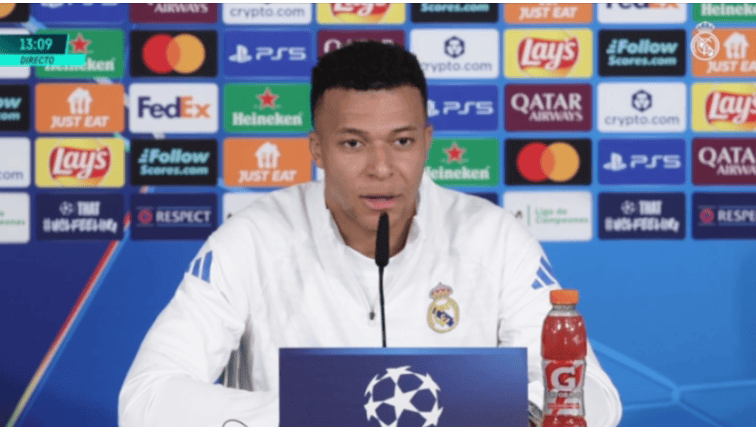 虎扑01月19日讯皇家马德里前锋姆巴佩出席对阵摩纳哥的赛前发布会。
