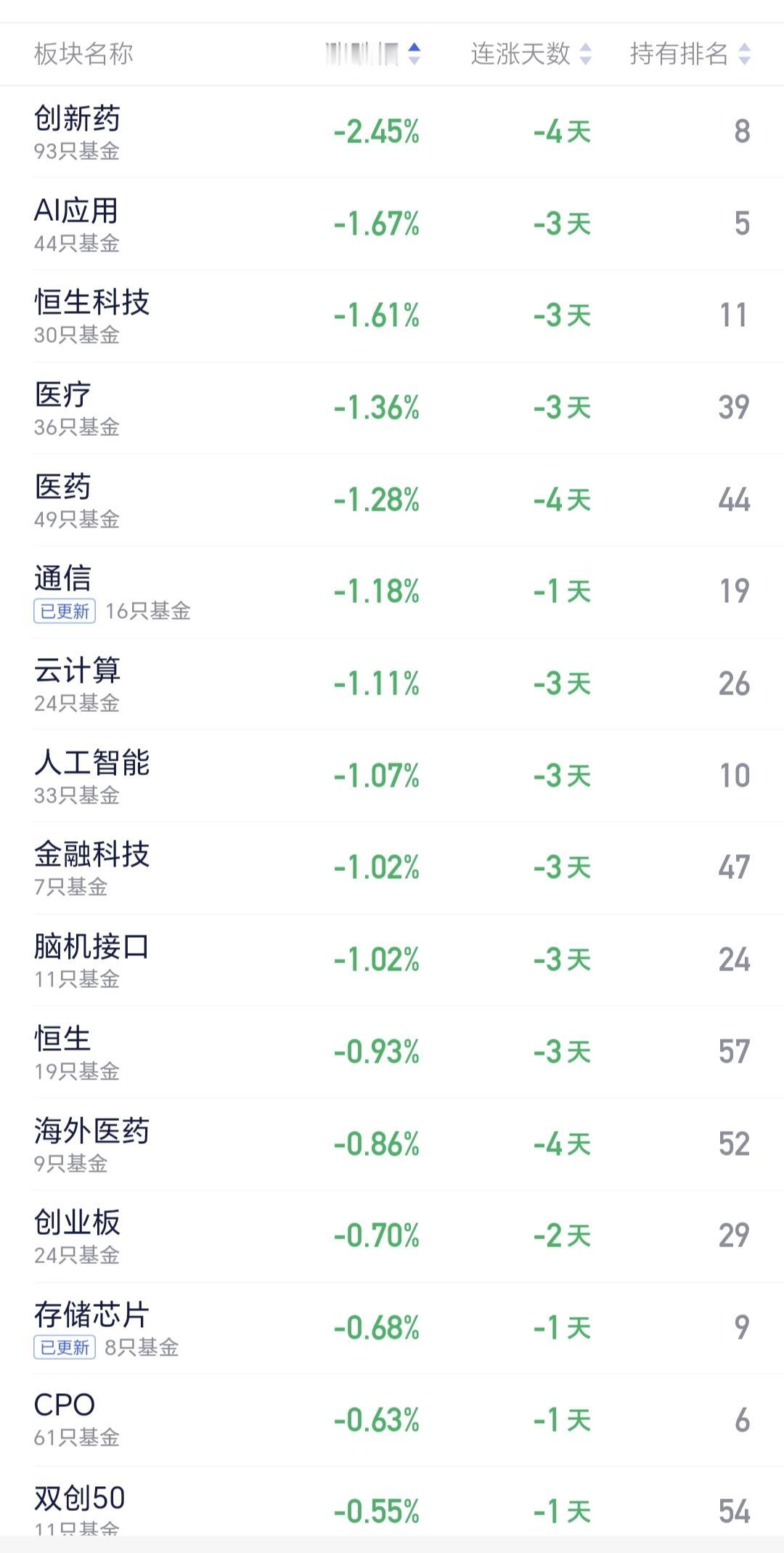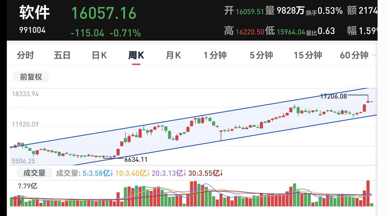基金:AI应用板块应该怎么办 欧洲市场现在下跌中,英国下跌了0.48%,德国下跌了1.18%,法国下跌了1.52%。 香港市场今天也是下跌,恒生指数下跌了1.05%,国企指数下跌了0.94%,恒生科技指数下跌了1.24%。 图3是今天基金的加仓排行榜,图4是今天基金的减仓排行榜,图5是今天基金的持有人数飙升榜,图6是今天基金的加仓人数和减仓人数,今天加仓60573812人,今天减仓25745694人,今天加仓人数超过了减仓人数。 持有的基金净值大部分已经更新,上涨幅度最大的三个板块是:军工板块,新能源汽车板块,大消费板块,下跌幅度最大的三个板块是:先进制造板块,兴全合宜,创新药板块,净值整体亏损了7799元。 我们来看一下下面的截图9,今天上涨幅度最大的三个板块是:电网设备板块,交通运输板块,化工板块,其他板块的上涨情况也见这张截图。 我们来看一下下面的截图10,今天下跌幅度最大的三个板块是:创新药板块,AI应用板块,恒生科技板块。 我们来看一下下面的截图11,这是软件板块日K线图,从图中可以看出,我画了两条倾斜向上的斜线,这是软件板块日线级别上涨通道,现在的位置处于这个上涨通道内,但距离上涨通道的下轨线很近,如果不跌破这条下轨线,这里就是一个进场点,如果跌破这条下轨线,软件板块日线级别短期上涨趋势就会被改变,你就不可以考虑进场,软件板块其实就是AI应用板块。 我们来看一下下面的截图12,这是软件板块周K线图,从图中可以看出,我画了两条倾斜向上的斜线,这是软件板块周线级别上涨通道,现在的位置处于这个上涨通道中,也就是说,软件板块周线级别处于上涨趋势中,软件板块大方向向上,持有的人可以继续持有,除非跌破这条这个上涨通道的下轨,才可以考虑要不要止盈出来观望。 我每天都会分享我的观点,我的观点只代表我个人的看法,不能作为你操作的依据,据此操作后果自负。