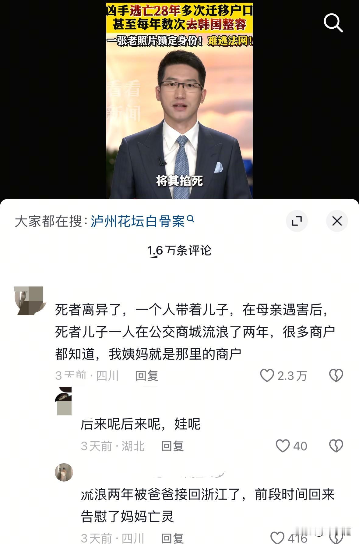 跪在地上的这个女人就是泸州公交商城白骨案的嫌疑人之一!她被捕之时居然穿的是Gucci的鞋子,逃亡的28年里她过的非常精致,不仅换了身份,还多次飞往韩国整容。 这个女人本名叫陈某芬,与被害人吴某萍都是公交商城做服装生意的商户! 时间拨回到1995年,那会二人之间的关系不错,吴某萍还曾借过4万元给她。没想到,她最终却做出了恩将仇报的事情。 吴某萍是浙江人,单身离异的她一边带着儿子,一边在四川泸州做生意。靠着不服输的精神,在九十年代中期她就打拼到了不少家业。 然而,1997年的一天,她却毫无征兆的突然消失了。 事实上,她早已经遇害,她的遗体被同行吴某芬和其丈夫杨某根埋藏在商城顶楼的一个花坛里。自此长达28年的时间都没有被人发现,直到2025年商城翻新,工人砸破花坛时才发现情况。 以至于,这么多年的时间里,杀害吴某萍的两个真凶一直逍遥法外! 陈某芬经多次迁移户口,摇身一变成为了上海人——陈某雨。28年的时间里,她经济实力不错,曾多次飞往韩国整容!被捕的当天,她脚上穿的竟是价值不菲的Gucci鞋! 而反观受害者一家,却给她们害苦了。 吴某萍被害之时,她的儿子年仅8岁!在那个举目无亲的地方,他在外流浪了两年多。吃喝用度,全靠好心人接济。那时候除了交通不便,通信也不发达,以至于吴某萍的前夫是过了很久才接到的消息…… 陈某芬被抓回泸州后,被带到了埋尸现场,只见她痛哭流涕的跪在地上向受害者吴某萍忏悔。 可即便她的态度再真诚,也无法弥补吴某萍家人所受到的伤害!早知今日,又何必当初呢? 人啊,无论遇上了什么事情,都要保持内心 最基本的善良!天网恢恢 疏而不漏,只要做了违法的事情,不管潜藏到哪里,最终的结局都要为自己的所作所为付出代价![祈祷][祈祷] 由始至终,吴某萍的儿子都让人无比心疼!如果母亲还在,他的人生一定是非常幸福的!