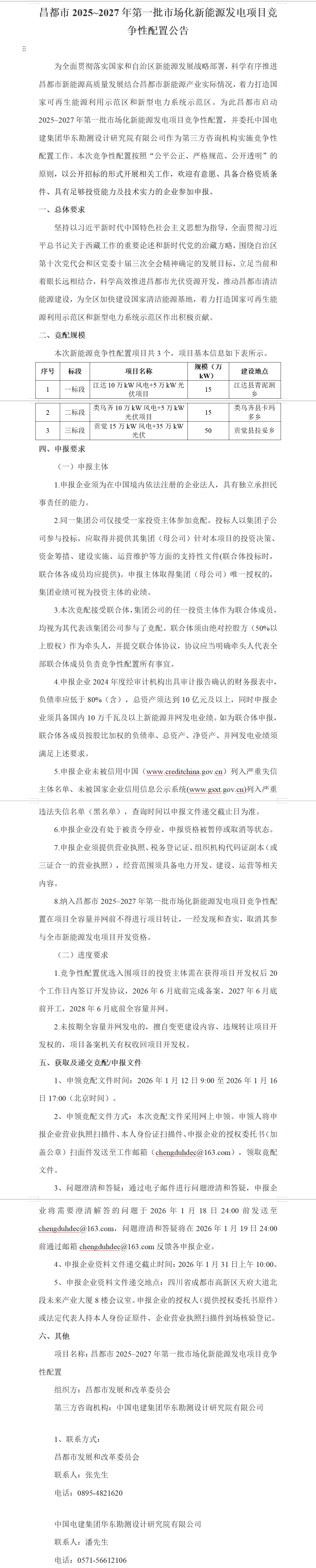 风芒能源获悉,近日,西藏昌都市发布2025~2027年第一批市场化新能源发电项目竞争性配置公告,优选规模总计800MW。