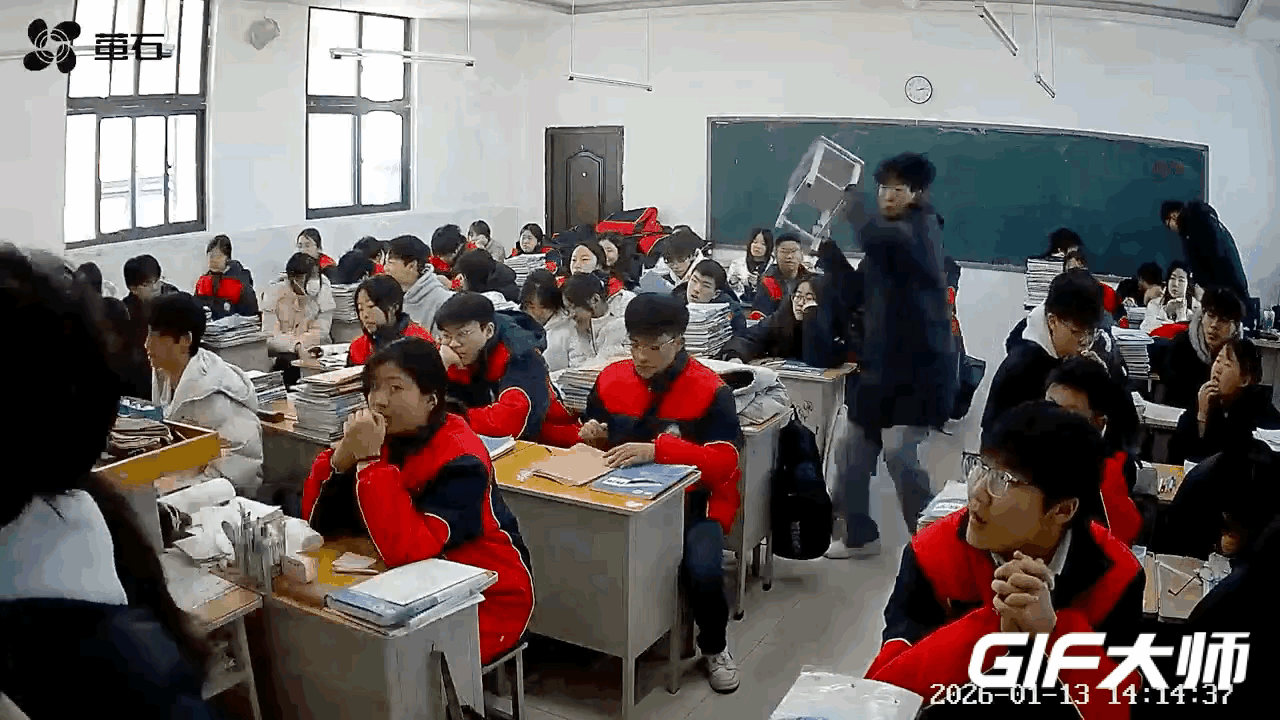 河南巩义,后排一个学生突然抄起凳子,朝着前排同学后脑勺就挥过去,好多人都担心是不