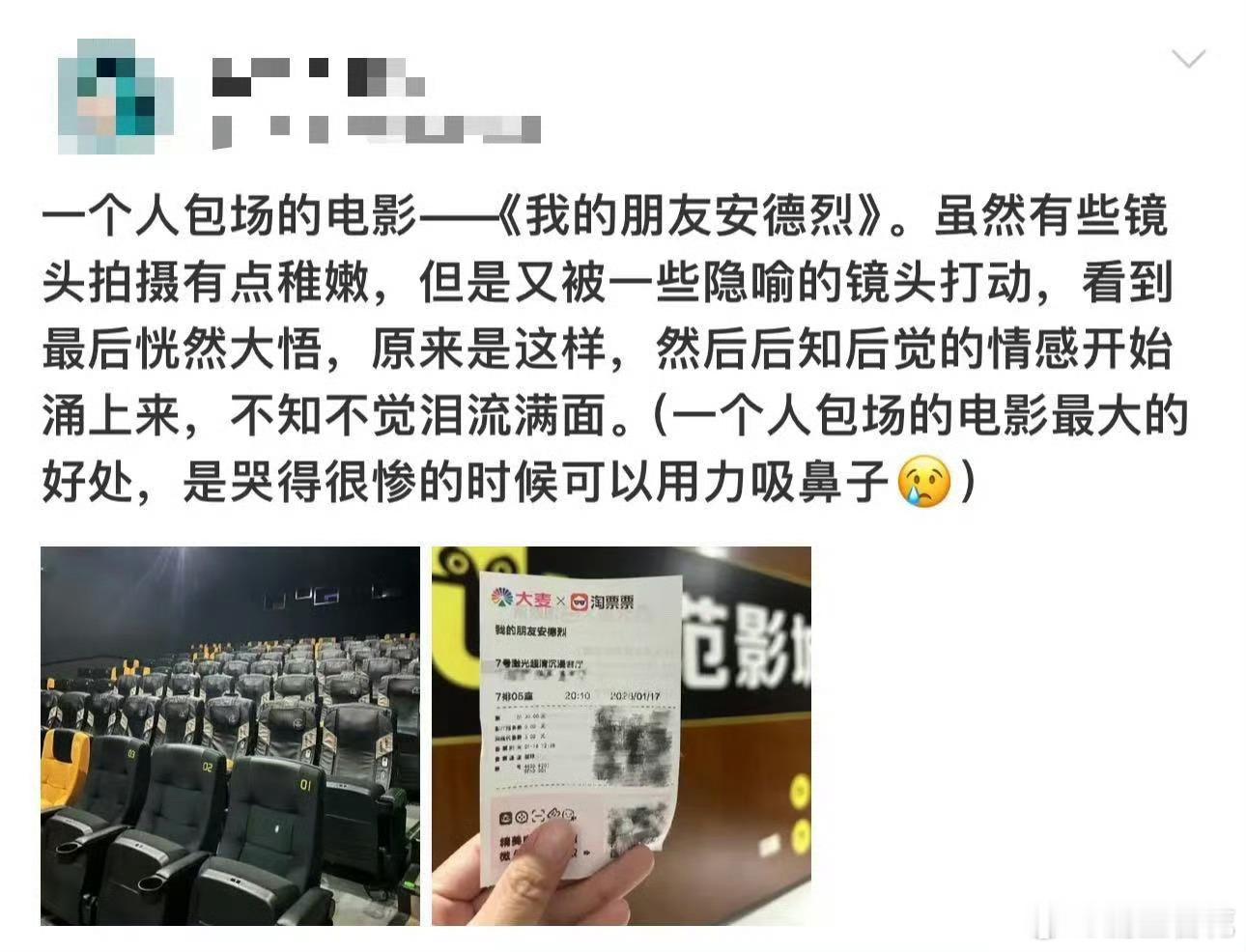 幸好是我一个人包场看安德烈 这场一个人的电影,哭到后劲十足。银幕里的大雪纷飞,银幕外的雪花飘落,好像李默和安德烈的故事,在现实里又延续了一遍,心疼到骨子里。