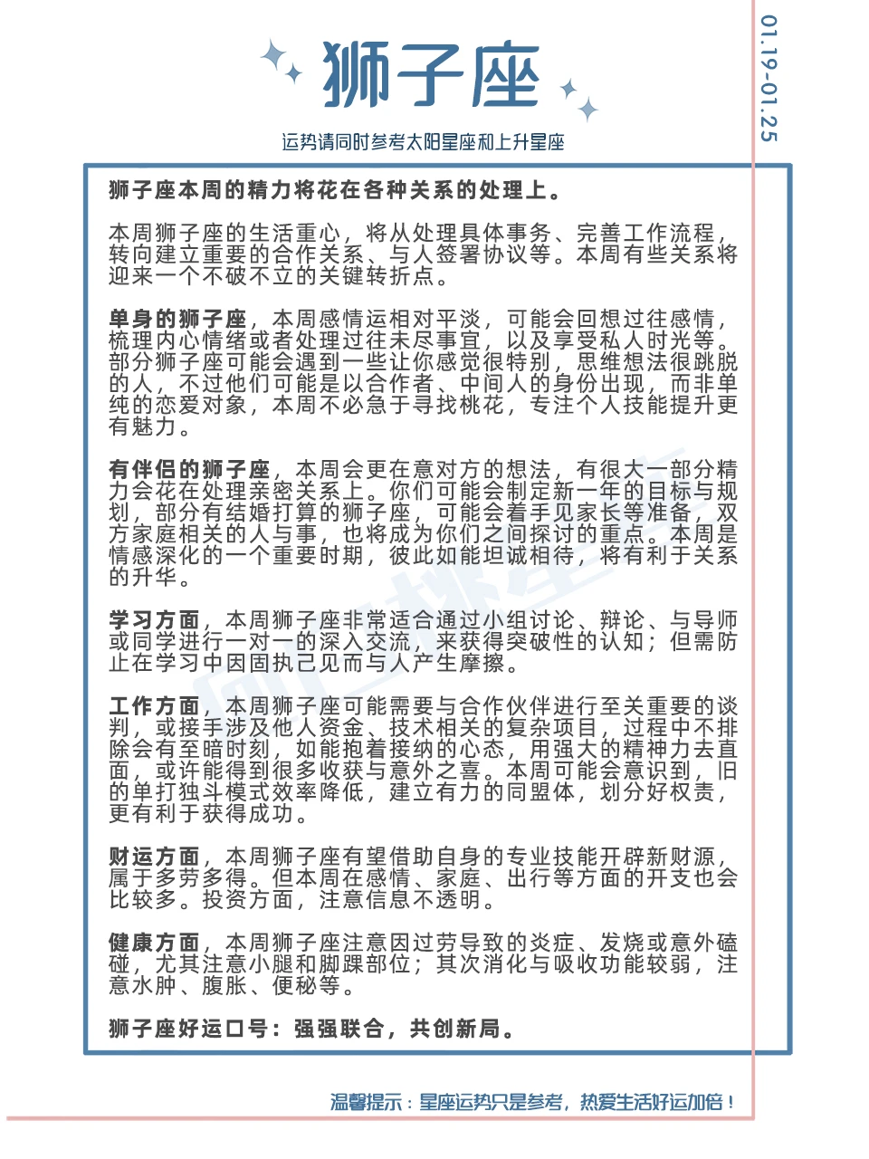 温馨提示:星座运势只是参考,热爱生活好运加倍!