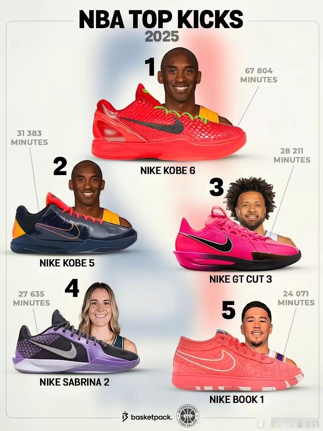 没想到吧,科比去世了已经6年的时间,但是在当今的nba里,他的球鞋依旧是最受欢迎的。根据统计,NBA球员上脚球鞋的总时长排行榜几,科比有4款球鞋进入前十,科比6代球鞋最受欢迎,总时长达到67804分钟。据悉,上个赛季有136个nba球员穿科比球鞋,占球员总数的23.9%。科比球鞋之所以这么受欢迎,一个是很多球员将科比视作偶像,另外一个是科比球鞋不仅好看,而且穿的舒服。