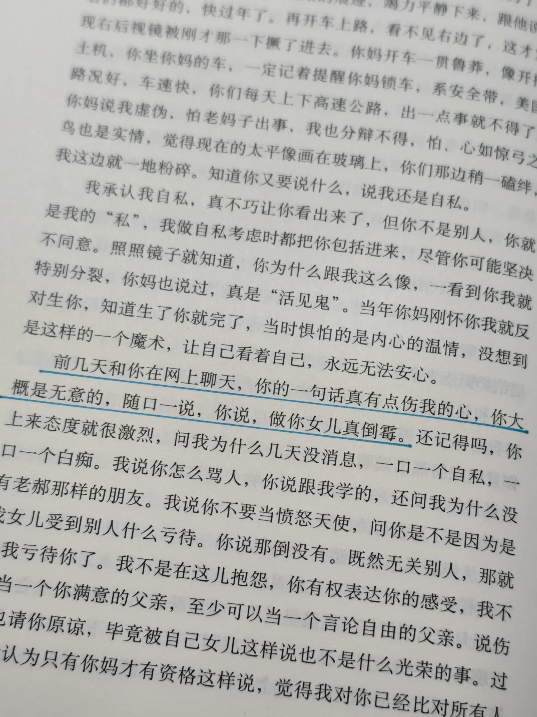 合上书时,我突然想起王朔那句:“你必须只有内心丰富,才能摆脱生活表面的相似。” 或许真正的父母之爱,不是给孩子完美人生,而是教会她在破碎中,长出自己的筋骨。