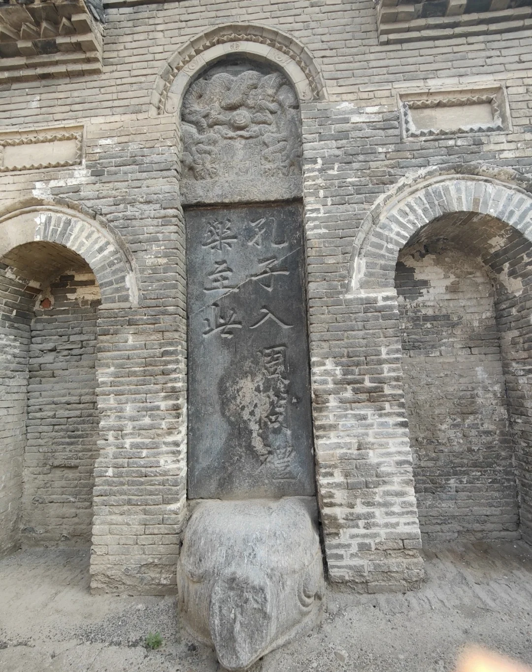 “孔子入周问礼乐至此”碑高1米,宽0.45米,圆首,首身一石。首刻二龙戏珠,边饰图案,明代万历已酉(公元1609 年)年赐进士第知鹿邑县事鸡丘王梦蚊撰文并立石。碑文楷书阴刻“孔子问礼处”五字。该碑原立于万教之祖牌坊西侧,后移于老君台上,现嵌于老君台上大殿前壁东侧,惜字迹已于文革时被凿坏。 孔子和老子分别是儒家学说与道家学说的创始人,都生活在春秋晚期,基本同处一个时代。“孔子问礼于老子”的故事不仅在古籍中有明确记载,在汉画像石中也多次出现,不仅体现了孔子虚心好学的精神,也记载了儒道之间交流相融的历史进程。 性的。 孔子在我国文化的历史地位及影响。 笔者以为孔圣人最伟大的地方在于其创办私学,突破了在此之前“学在王官”(只有官方认定的贵族子弟才能读书识字)的状况,打破了当时贵族与平民之间的鸿沟且扩大了知识传授,号称弟子三千,贤者七十有二。 作者:九芒考古。