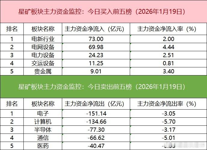 a股 板块个股主力大单资金从板块表现来看,贵金属、电网设备、旅游酒店等板块涨幅居前,AI应用等板块跌幅居前。从主力板块资金监控数据来看,电新行业主力资金净流入居首。板块资金流出方面,电子板块主力资金净流出居首。从个股主力资金监控数据来看,主力资金净流入前十的个股所属板块较为分散,特变电工净流入居首。主力资金流出前十的个股所属板块较为分散,工业富联净流出居首。 丽水·遂昌金矿国家矿山公园