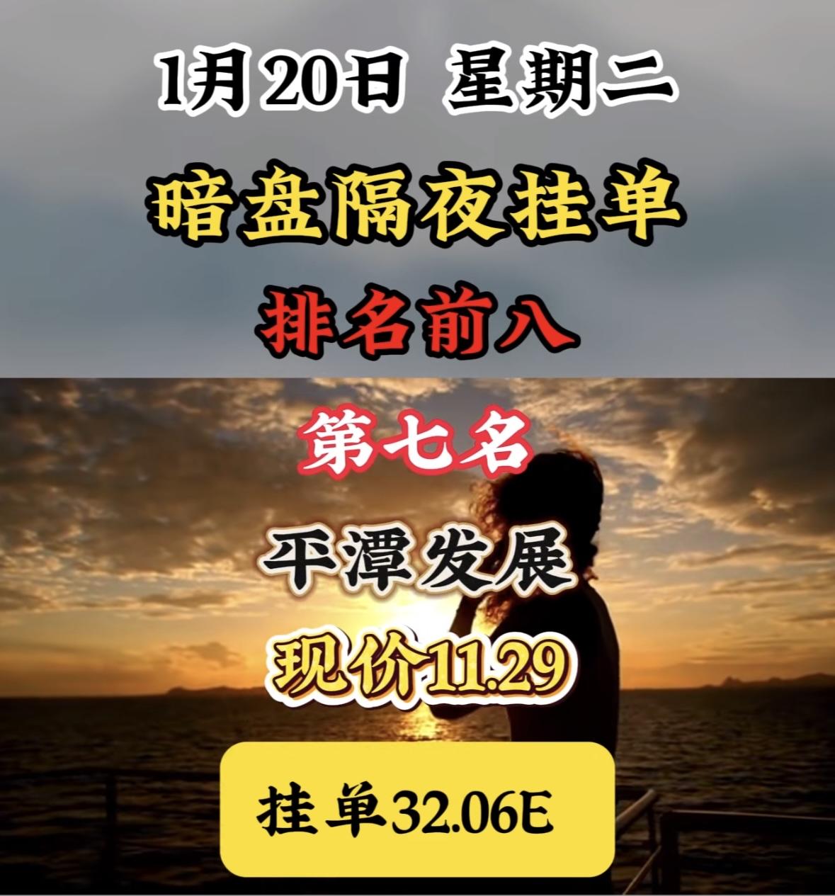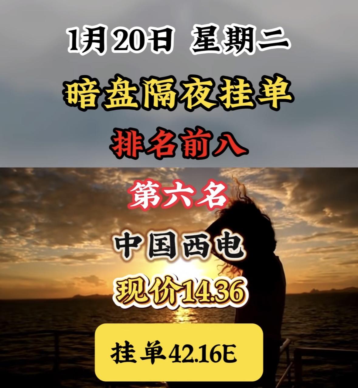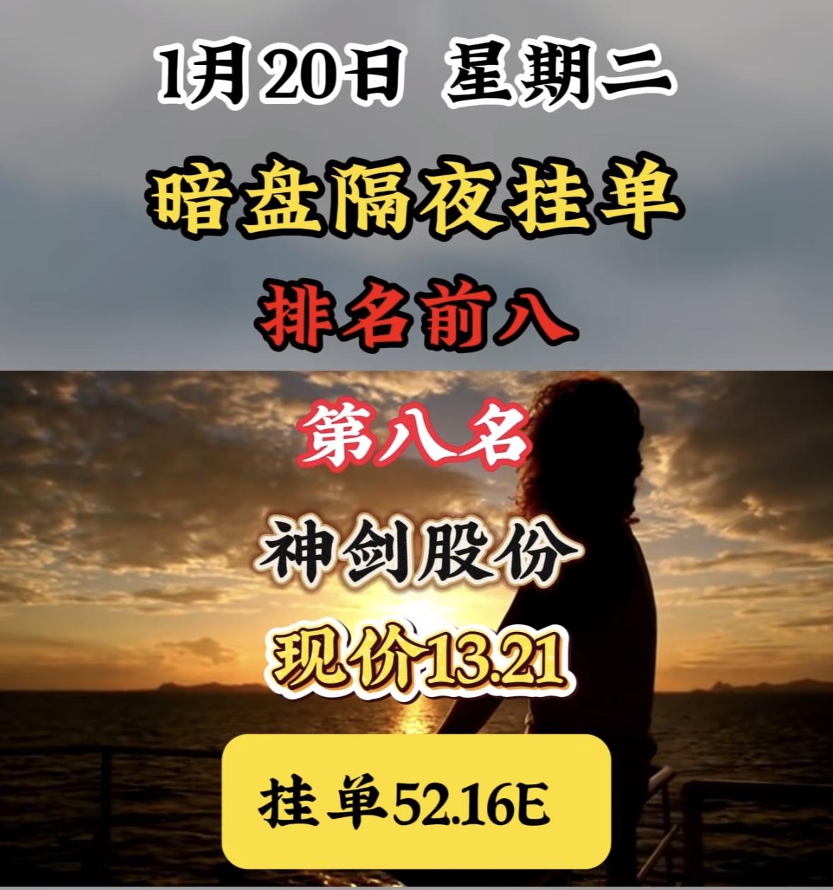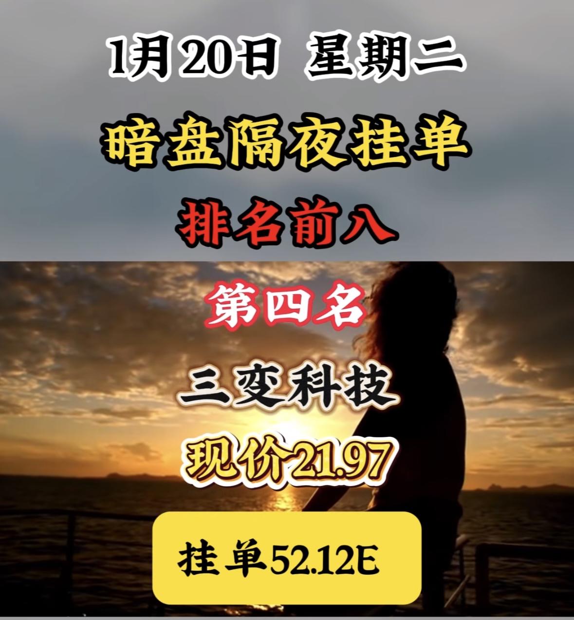 1月20日暗盘隔夜挂单排名前八! 暗盘挂单表现亮眼,海格通信领跌榜单,现价与挂
