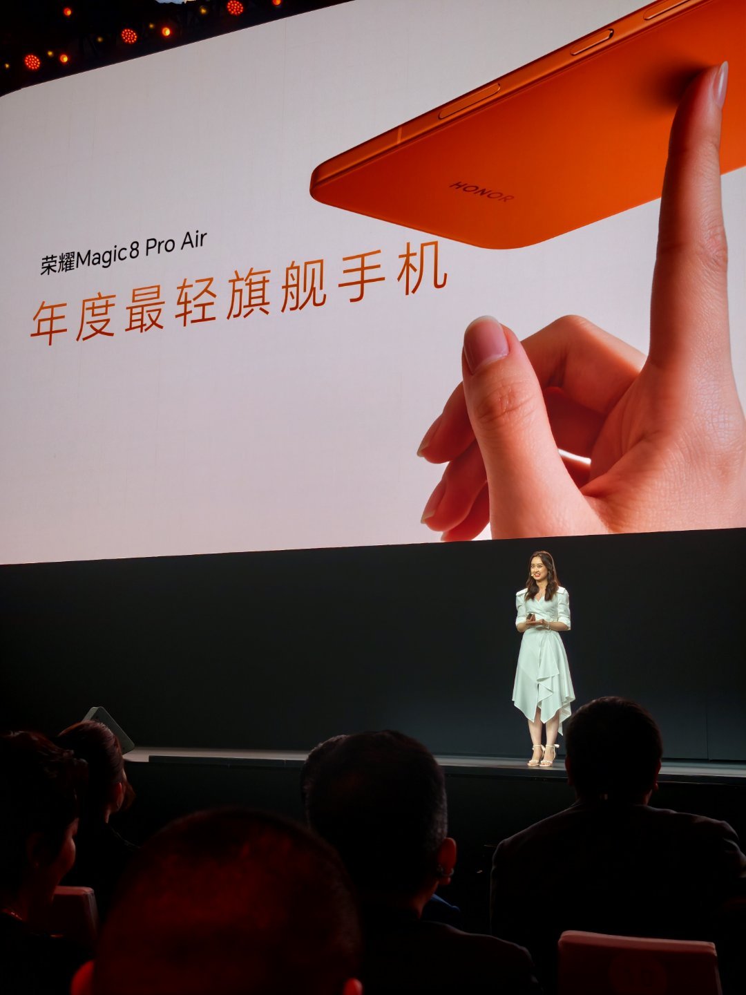 荣耀产品经理,王君颖,大家喜欢吗?目前听下来,发布会讲的不错,没有生硬的读稿。而且离这么远都能看得出来,眼镜真大。荣耀Magic8 Pro Air新品发布会 珠海·珠海国际会议中心
