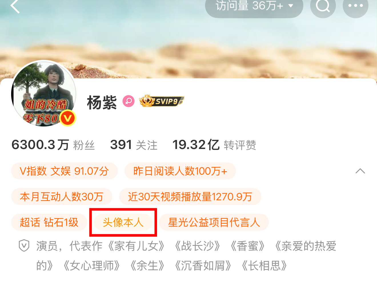 点开我紫的微博主页,这么多年第一次换角色头像所以全力托举这棵🌳好么!!大家一起努力冲💪生命树 杨紫换头像