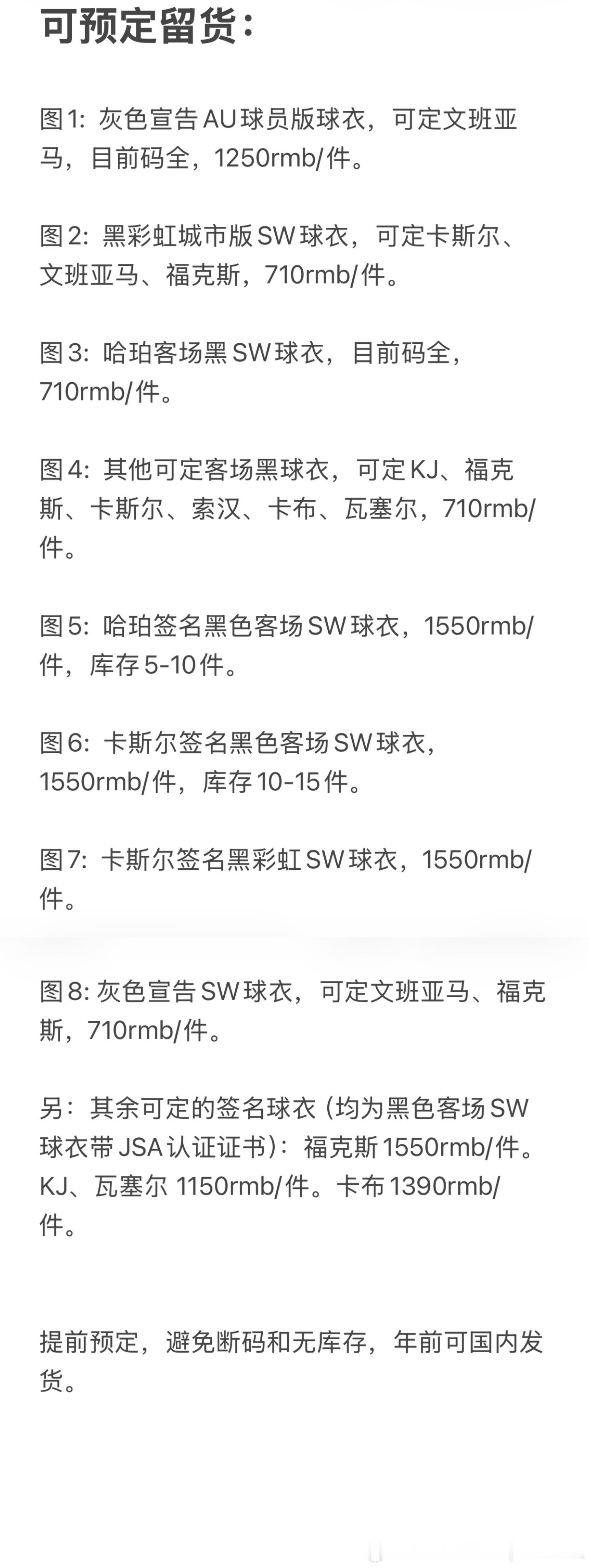 有些折扣球衣可以预定了,详情看图9,需要的可以私聊我